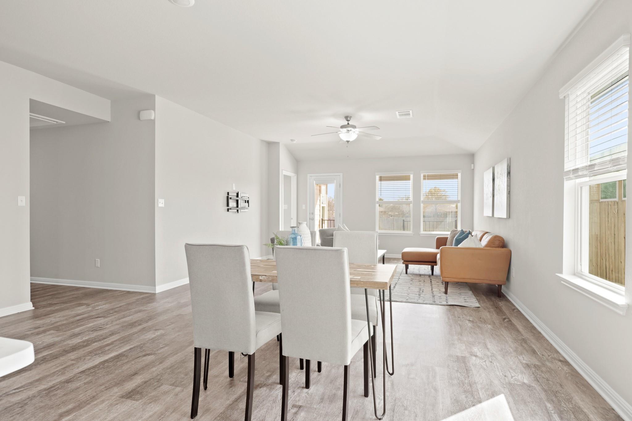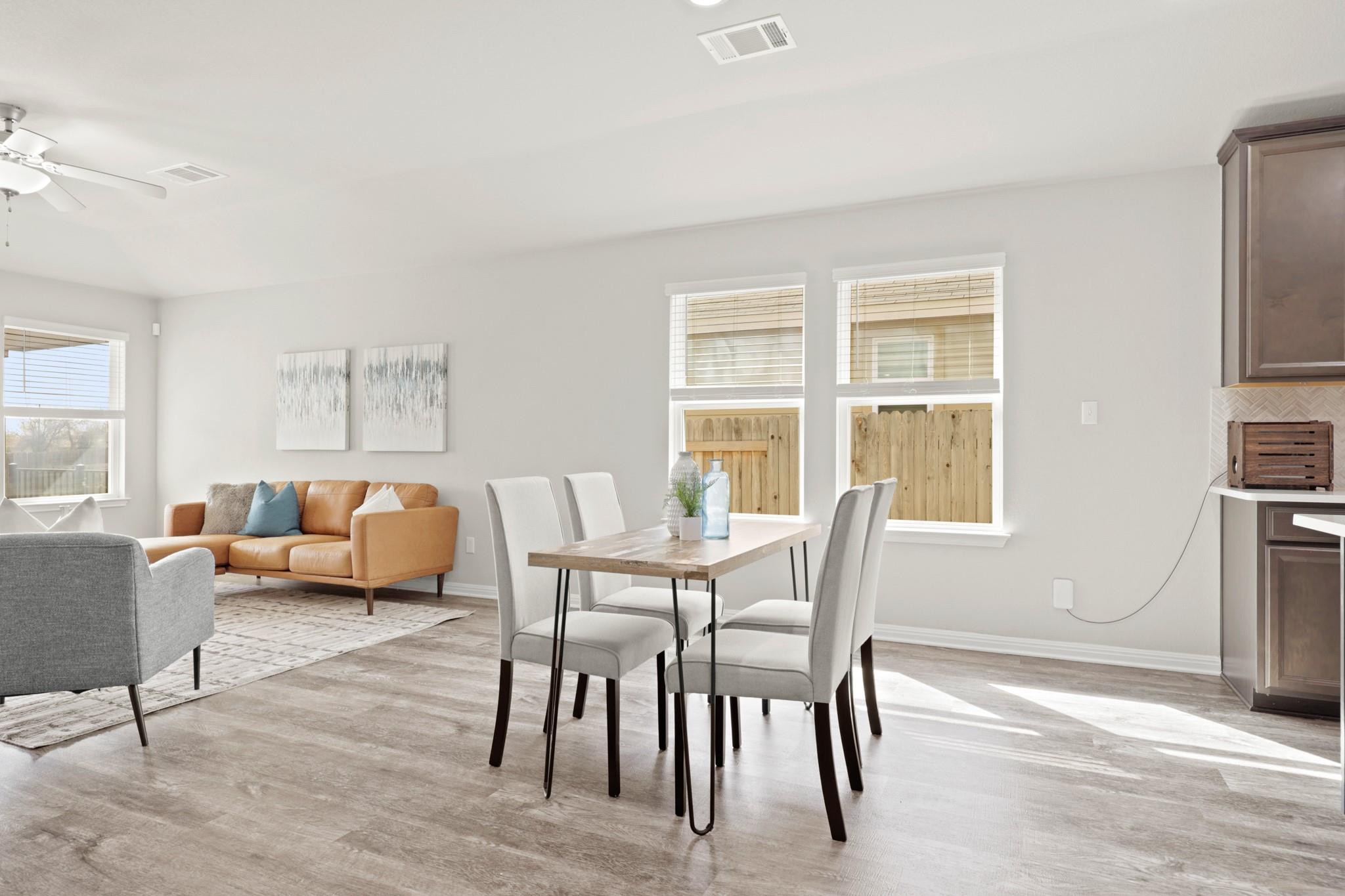 All one-story, like new, 2022 Meritage Built, Energy Star Home! Walkable to Hutto's Historic Old Town and the new Co-op Development. Come enjoy the huge yard and patio, with no neighbors behind. Four bedrooms or use 4th room as office, two full bathrooms and an upgraded garage floor. Water Softener, Refrigerator, Washer/Dryer convey with property. Vacant, easy show on Supra. Enjoy neighborhood amenities such as, a covered play...