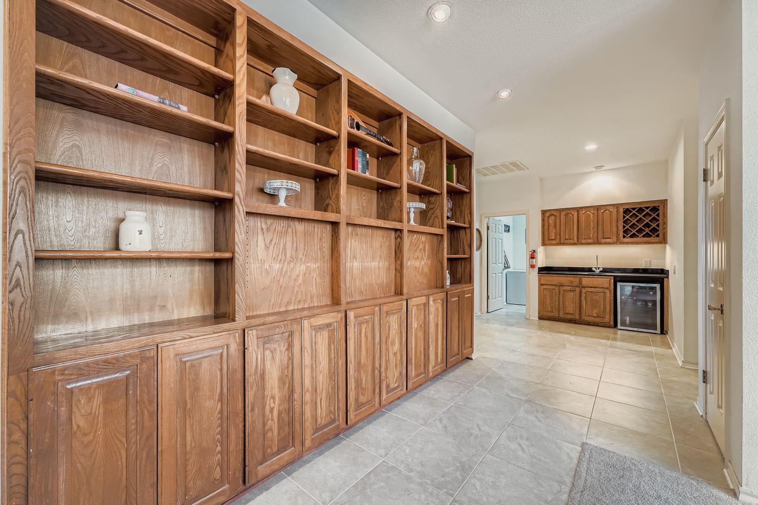 - Bookcases, Built-in Features, Cedar Closet(s), Ceiling Fan(s), Ceiling-High, Granite Counters, Double Vanity, Kitchen Island, Multiple Dining Areas, Multiple Living Areas, Primary Bedroom on Main, Recessed Lighting, +4 more