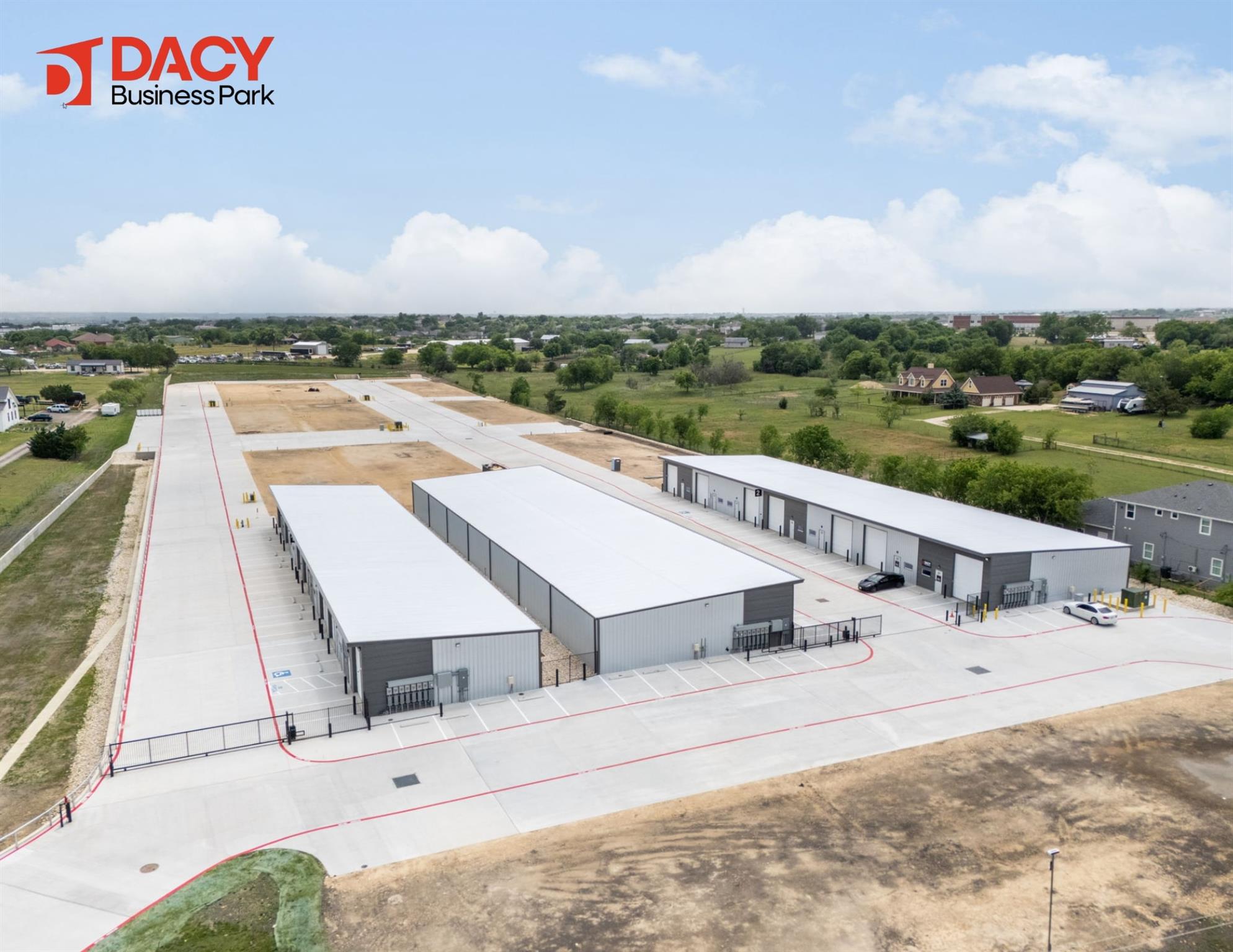 Dacy Business Park offers new construction industrial suites for sale in Kyle’s fastest-growing commercial corridor. This master-planned development will deliver 13 buildings and 91 suites totaling approx. 137,550 SF across four phases. Suites range from 1,200–3,300 SF, ideal for owner-users and investors. Phase II delivers Q1 2026, with limited Phase I units available now. Features include 21’–24’ clear heights, 12’ x 14’ gra...