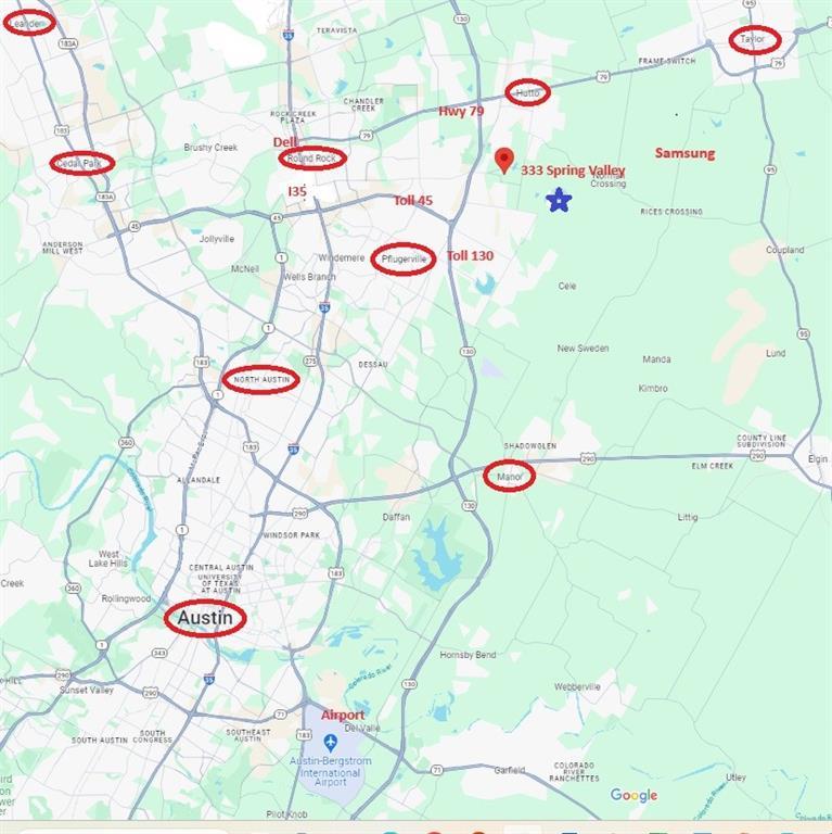 FOR SALE: 5.72 acres off CR 138 Lane, near the new Southeast Loop around Hutto. This property could be subdivided into two lots. Buyers can build another home on the 2nd tract. A guest home / detached garage / workshop are also allowed. For animal lovers, two non-household ANIMALS are also permitted. There is a home on the property that needs alot of work, or a tear down. 333 Spring Valley is a short distance from major highwa...