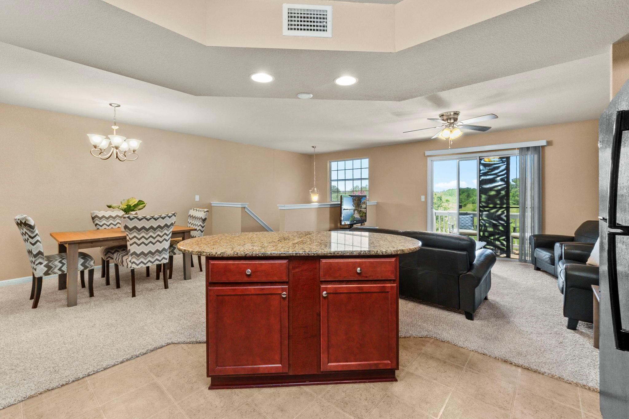 Buyer incentives with preferred lender plus 1 year HOA dues paid! Beautifully maintained home in Kissing Tree offering privacy, versatility, and scenic views! Unique floor plan includes a separate lower-level suite with private entrance, bedroom, bath, kitchenette, and laundry—perfect for guests, extended family, or rental income. Main floor features 2 bedrooms, 2 baths, and an open kitchen/living/dining area. Enjoy the upsta...
