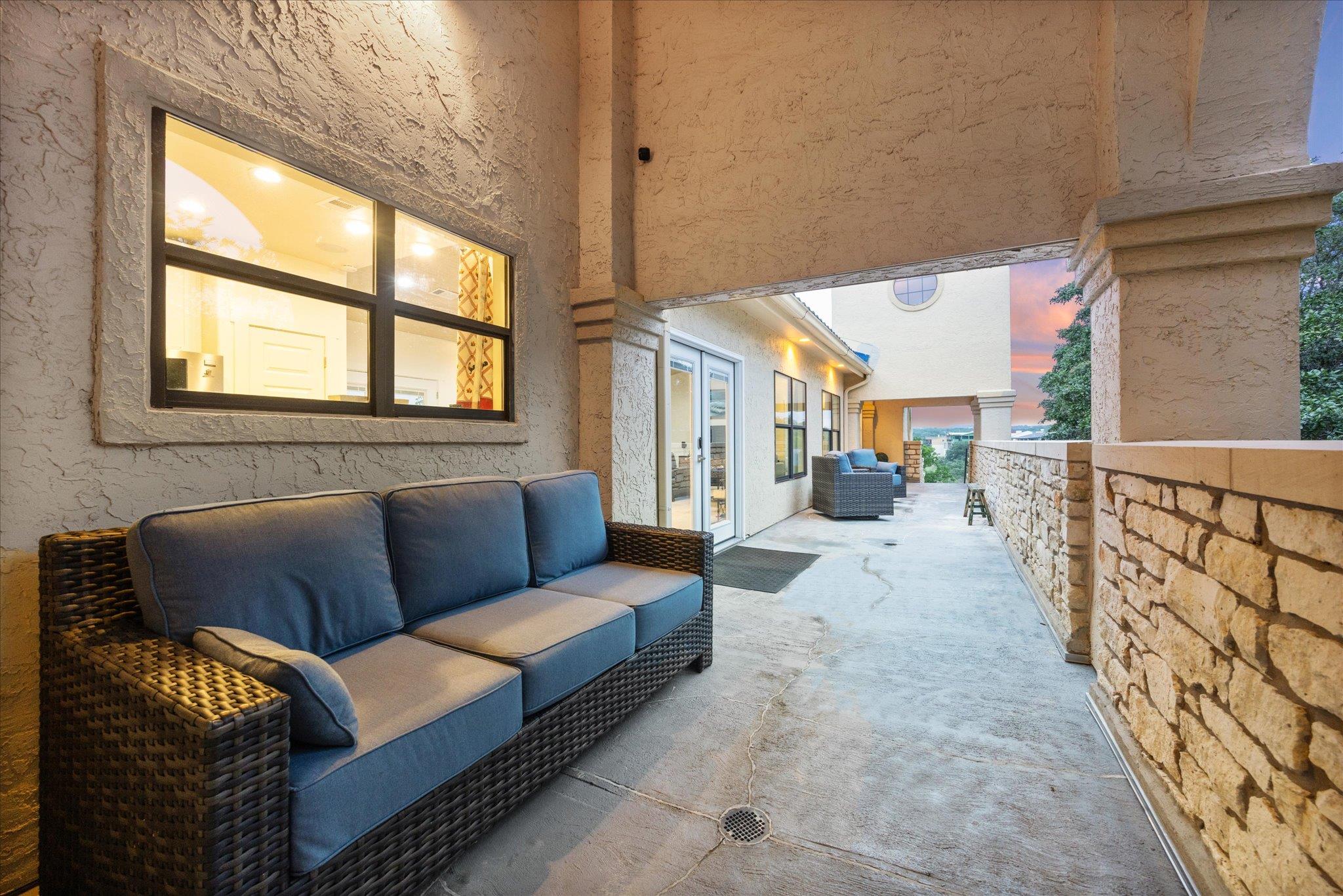 Completely remodeled large freestanding (no adjoining walls) condo on Lake Travis. Lots of privacy and very quiet. Watch the sunrise from the front porch and the beautiful sunsets from the back porch. Lake is just a few feet away. Private elevator-being repaired. Closed in storage for bikes, golf cart ect. Reserved parking spots. Restaurant, spa, work out area, sauna, indoor & outdoor pools and hot tubs. Sports courts, fr...
