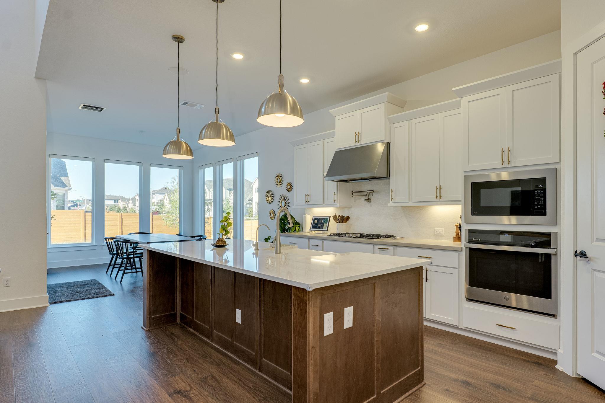 Better than new Taylor Morrison home on a large corner lot facing the greenbelt and S. San Gabriel River space. Trails and river across the street! Beautiful home with over 70k of builder upgrades(lot premiums/upgrades) and in excess of 100k of additional post closing improvements(Landscape, trees, patios, built-in surround sound throughout, automatic window shades, etc.) Dramatic entry/stairs open to living w/2 story volum...