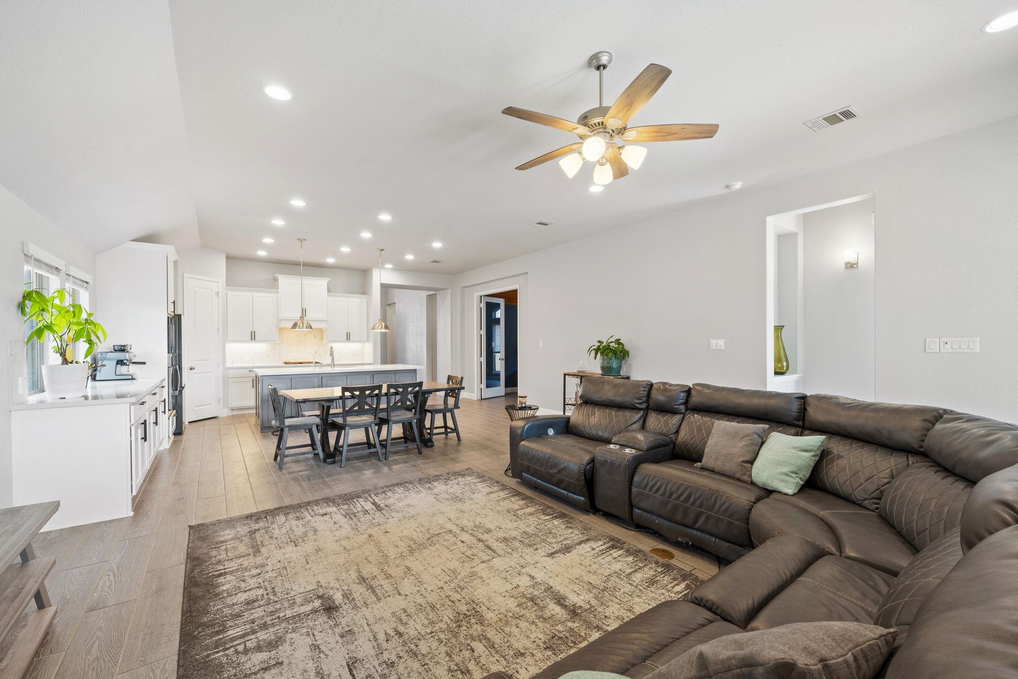 Stunning 2545 sq ft Perry home located in the highly desirable Grove of Vintage Oaks, perfectly situated on a level greenbelt lot for added privacy and serene Hill Country views. This thoughtfully designed 4-bedroom, 3-bath home features an exceptional open-concept floor plan ideal for both everyday living and entertaining. The expansive kitchen is a true centerpiece, offering an oversized island, gas cooking, and an abundance...