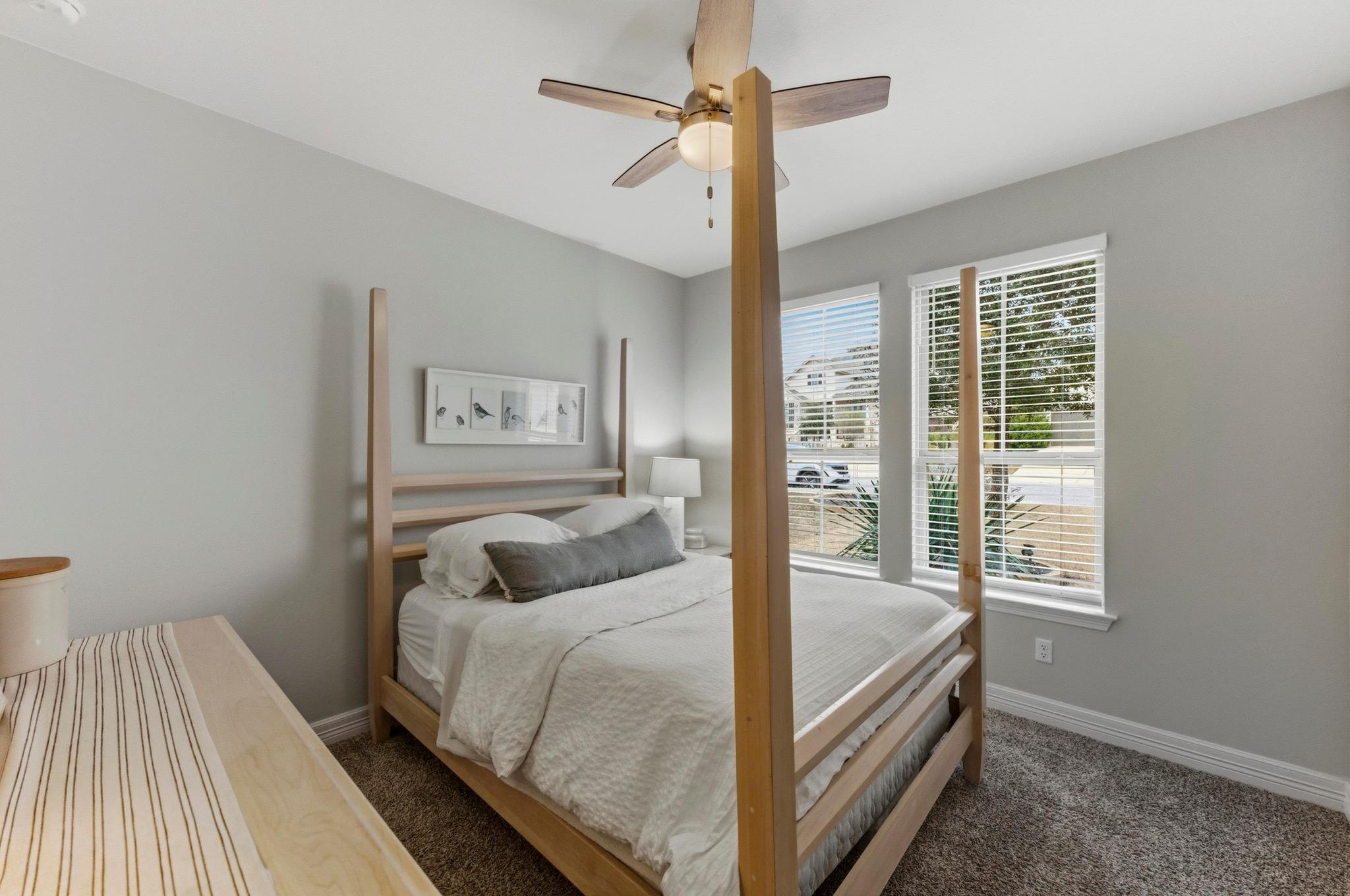 This exquisitely upgraded two-story Chesmar home offers a beautiful and intelligent floorplan, featuring four bedrooms plus an office and three full bathrooms, all anchored by stunning wood-look tile throughout the main areas. The main level provides seamless living with three bedrooms for accessibility, while the private second-story guest suite includes a 4th bedroom, full bath, and second living area, perfect for houseguest...