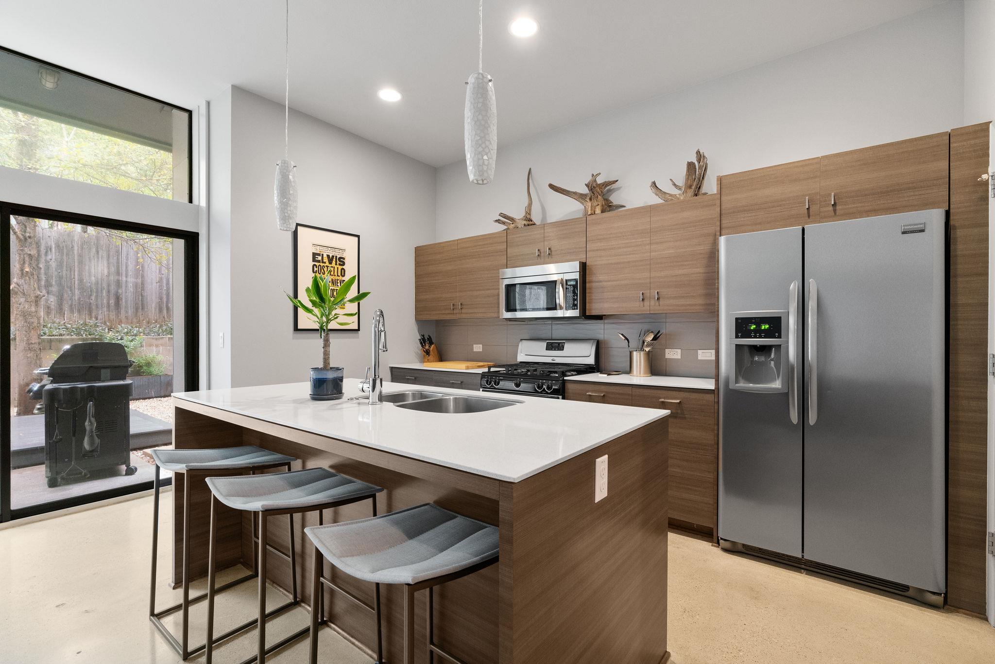 Luxury living in the hottest zip code in Austin; 78704. Situated in a quiet, gated community between S. Congress and S. 1st, this stunning, freestanding home features 2 bedrooms, 2.5 bathroom, 2 living areas and an attached 1 car garage. Designer detailing abounds throughout both levels of the home; glossy concrete flooring on the main floor, carpet on the 2nd and 3rd floors, modern cabinetry in the kitchen and high-end lighti...
