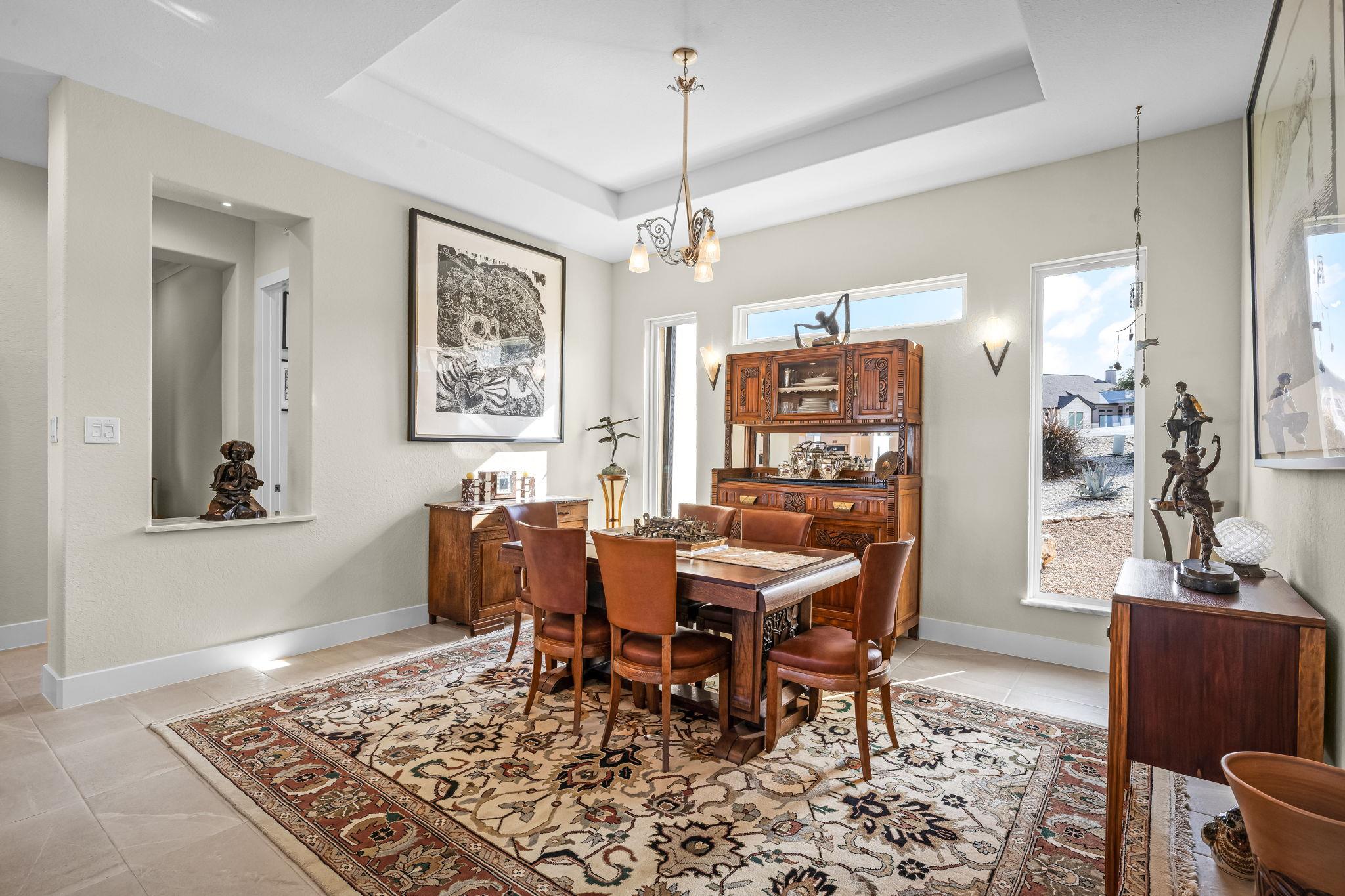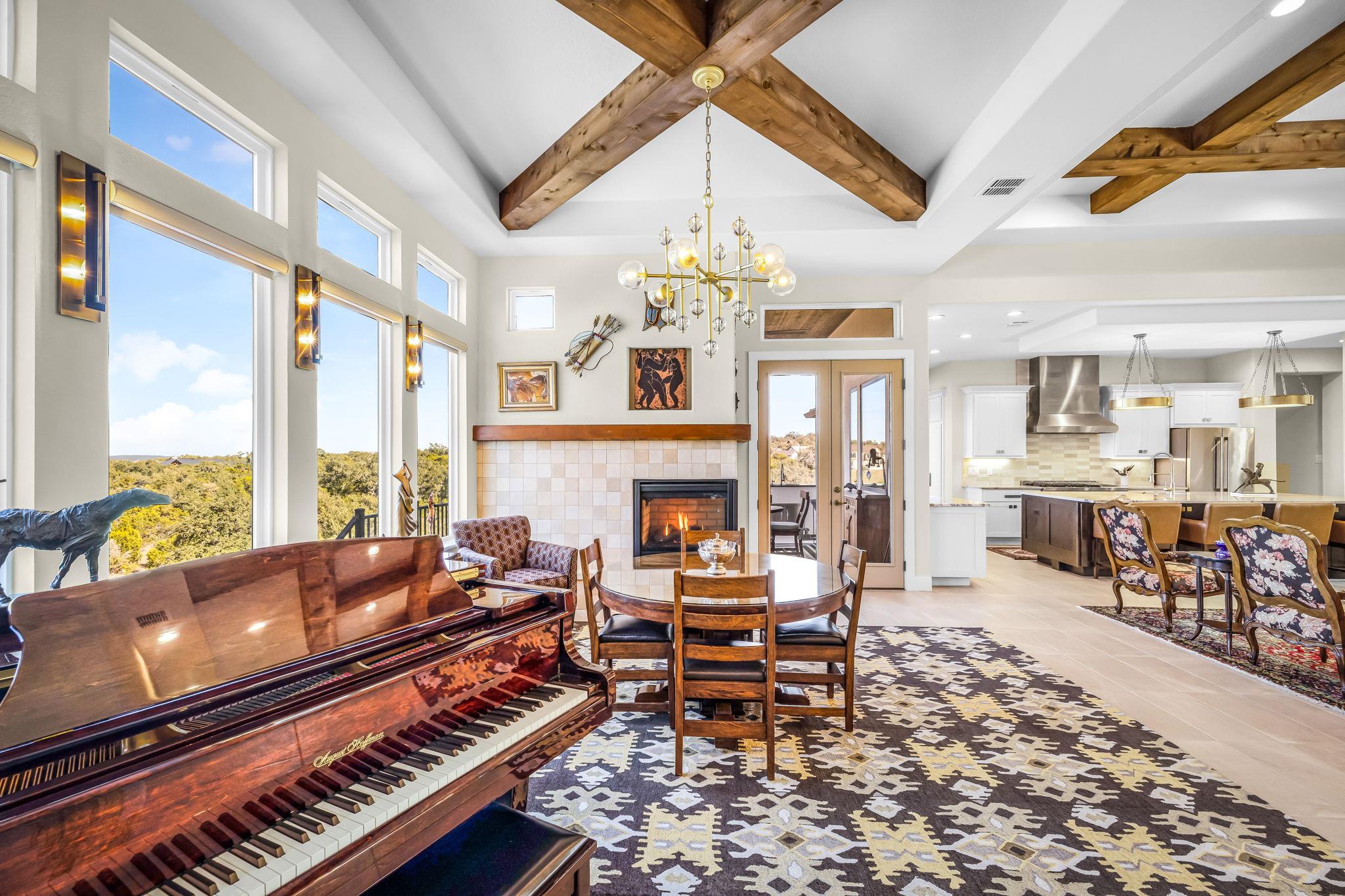 - Breakfast Bar, Built-in Features, Ceiling Fan(s), Beamed Ceilings, Ceiling-High, Tray Ceiling(s), Chandelier, Granite Counters, Double Vanity, Dry Bar, Eat-in Kitchen, Entrance Foyer, +16 more
