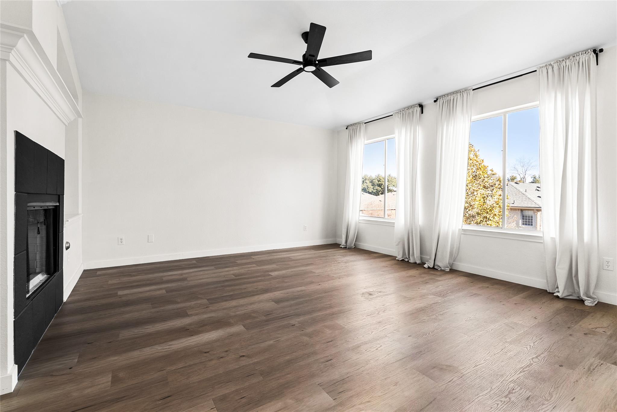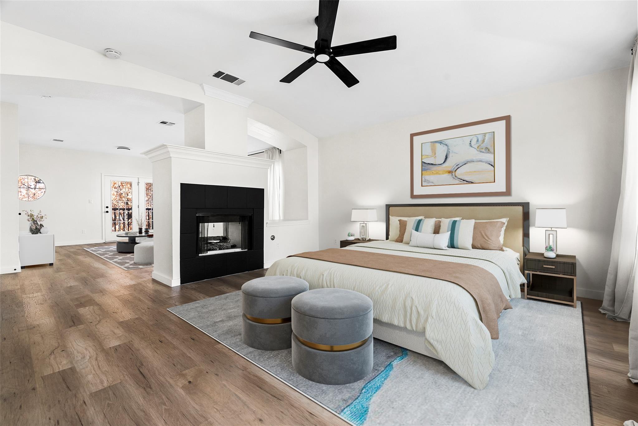 A rare blend of modern luxury and farmhouse design, this home is filled with abundant natural light. The primary bedroom is the centerpiece, anchored by a newly remodeled modern bathroom and an architecturally striking layout featuring a fireplace at the center and a lounge that opens to a large private balcony, perfect for morning coffee or quiet evenings. New flooring extends across the entire house. Outdoors, the backyard i...