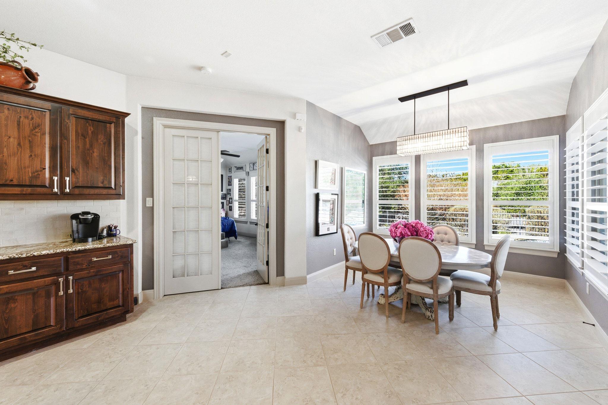 - Breakfast Bar, Ceiling Fan(s), Ceiling-High, Tray Ceiling(s), Chandelier, Granite Counters, Double Vanity, Eat-in Kitchen, Entrance Foyer, Kitchen Island, Multiple Living Areas, No Interior Steps, +5 more