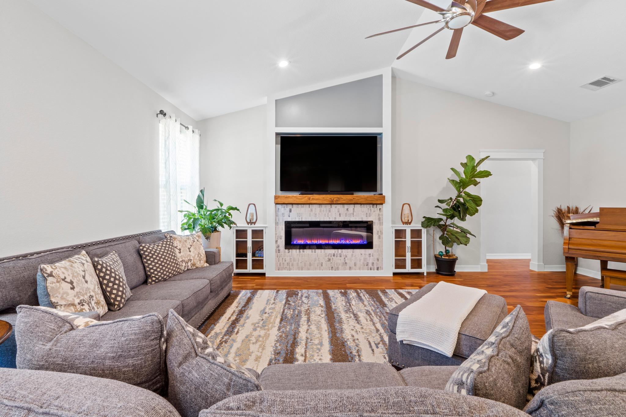 Beautifully updated single-story home in sought-after Highland Lake Estates offering an easy open layout and relaxed Hill Country lifestyle. Designer interior and exterior paint, wood and tile flooring, granite countertops, custom cabinetry, and stainless appliances highlight a bright kitchen with center island that flows seamlessly into dining and living areas. Built-in cabinetry and electric fireplace create a warm focal po...