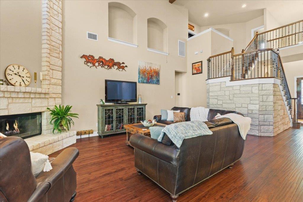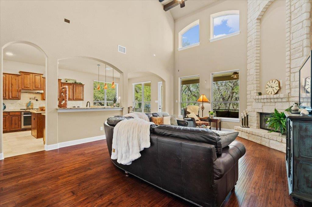 Discover your dream home bordering with direct access to the beautiful Brushy Creek and greenbelt, providing direct access to miles of scenic walking, jogging, and biking trails right from your backyard. Outdoor living is elevated with an extended back patio, showcasing a custom rocked fireplace and a full outdoor kitchen, including a built-in gas grill and refrigerator for effortless al fresco dining and year-round enjoyment....