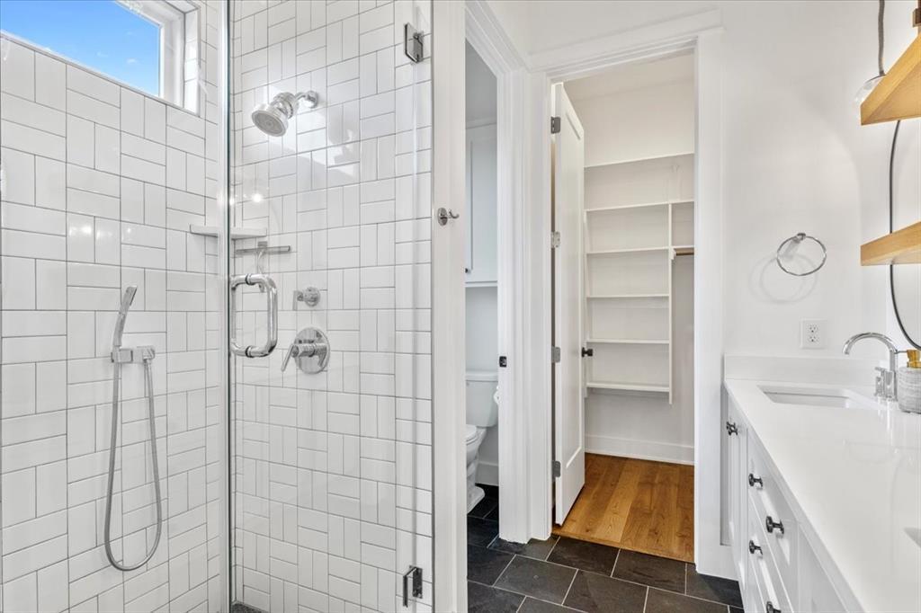 Contemporary farmhouse with well-designed high-end finishes : wire-brushed stained oak floors, marble tile, and oversized windows, filling the home with natural light. With natural light flowing throughout the open first floor plan this home is an entertainers dream come true. The kitchen features a silestone waterfall island, quartz countertops, a state-of-the-art Italian Bertazzoni gas range, stainless steel appliances, wine...