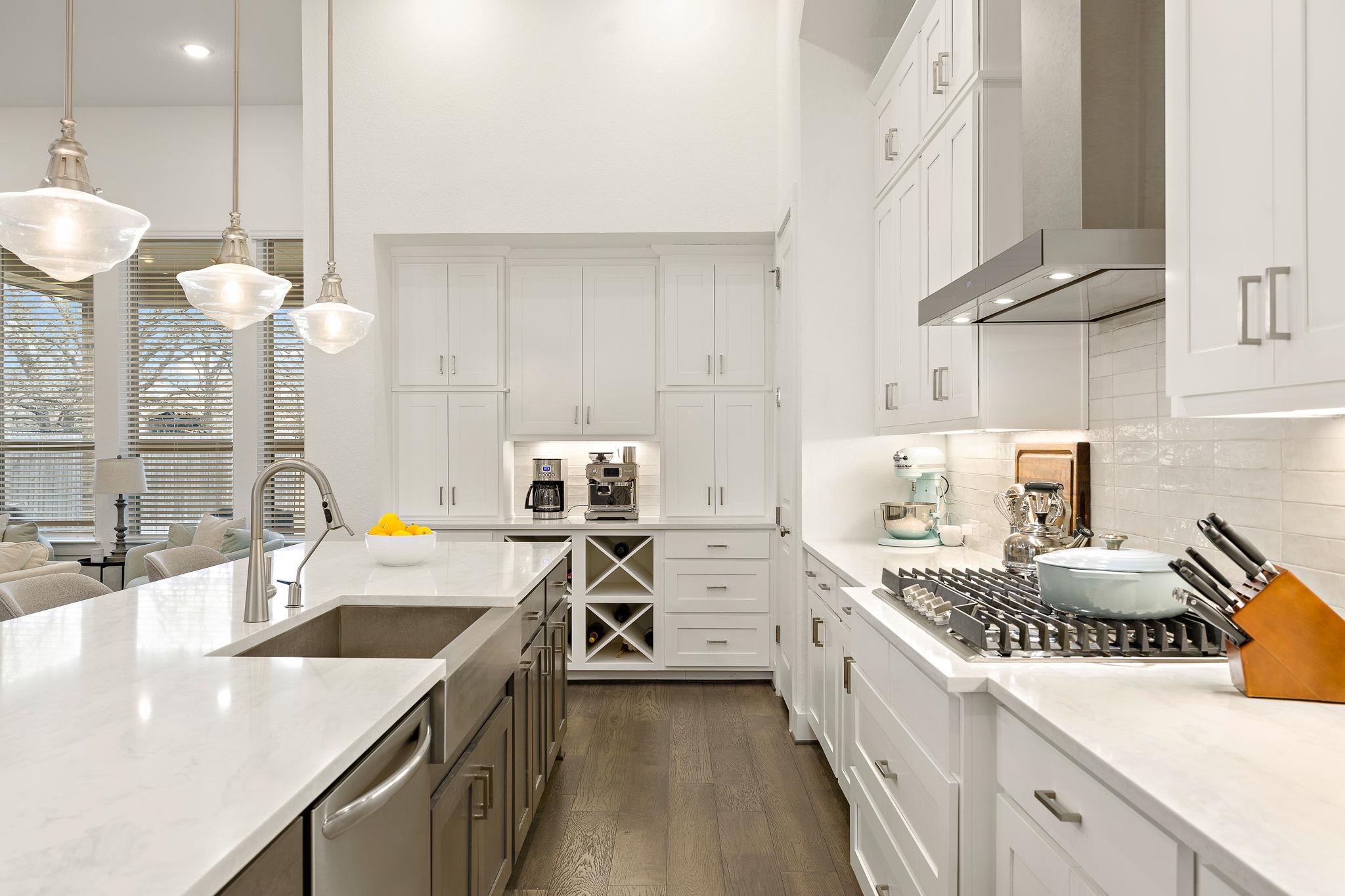 Welcome to 412 Great Lawn Bend, a like-new, beautifully maintained 2023-built single story home in Santa Rita Ranch, zoned to Liberty Hill ISD, offering backyard greenbelt privacy with no rear neighbors, walkable amenities, and thoughtful architectural design. 13-foot ceilings and elegant archways add character throughout the main living areas. Ideally positioned within the community, the home is walkable (under one mile) to t...