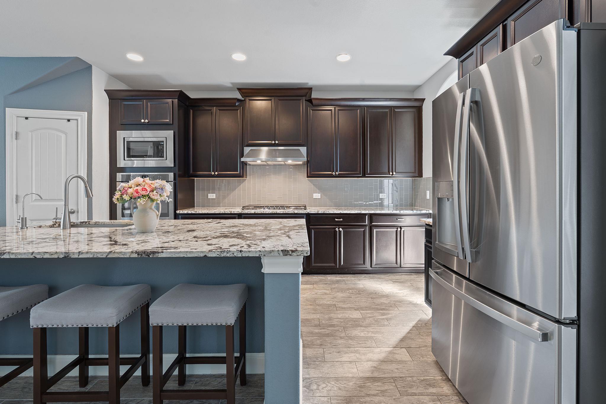 This sophisticated, energy-efficient Meritage home offers standout upgrades, space, and style on an oversized corner lot backing to a scenic greenbelt with treetop views from the upstairs balcony. The home boasts spectacular curb appeal with a dramatic custom staircase leading to a covered patio and open-air courtyard before reaching the elegant front entry. Immaculately landscaped and illuminated for refined nighttime ambianc...
