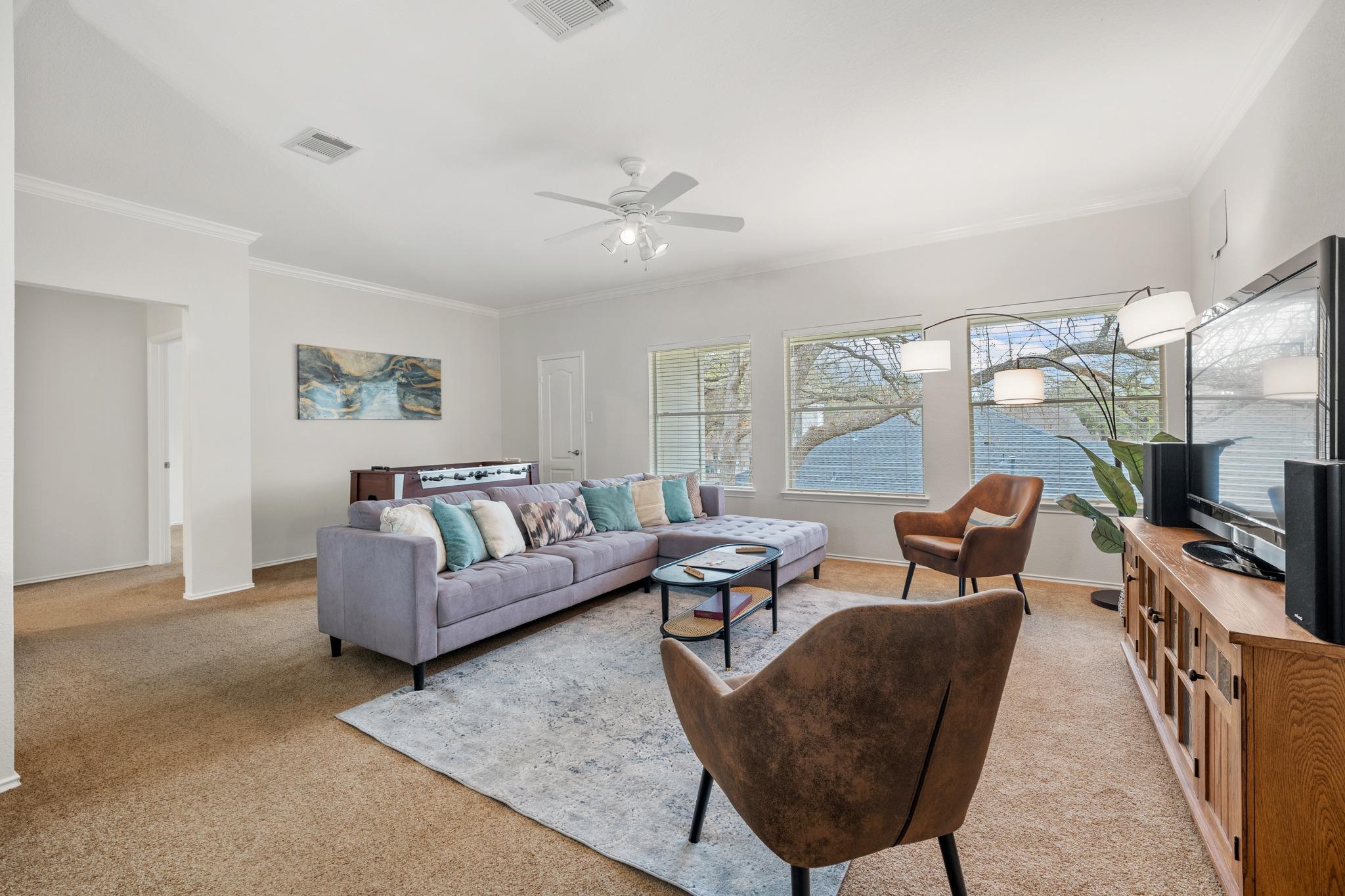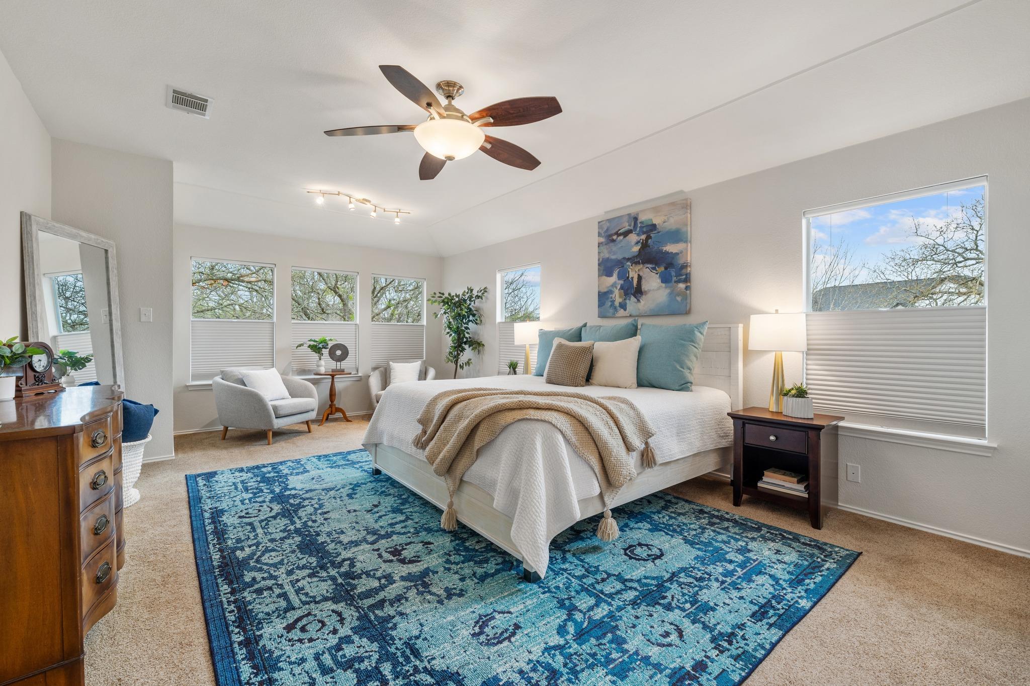 If you’ve been looking for a home in Vista Oaks that actually has room for everyone to spread out, this 5-bedroom, 3.5-bathroom single-family property is exactly what you need. It sits on a spacious, .20-acre corner lot shaded by mature trees that make this neighborhood feel so established. What’s really unique here is the layout; you get two full primary suites, one on the main floor and one upstairs, which is a total game-ch...