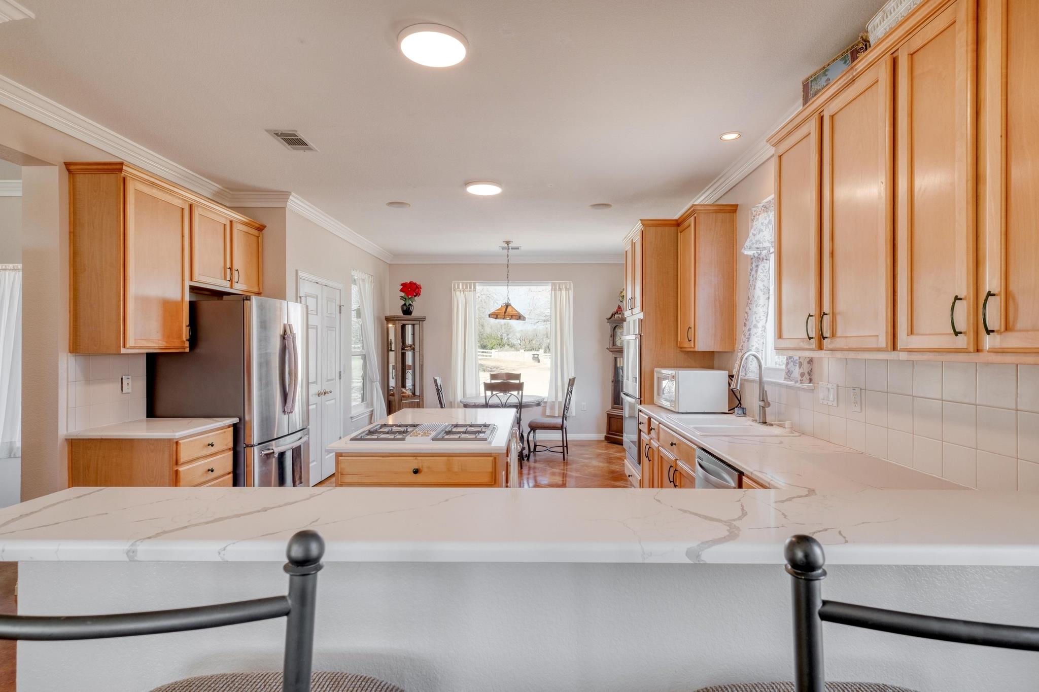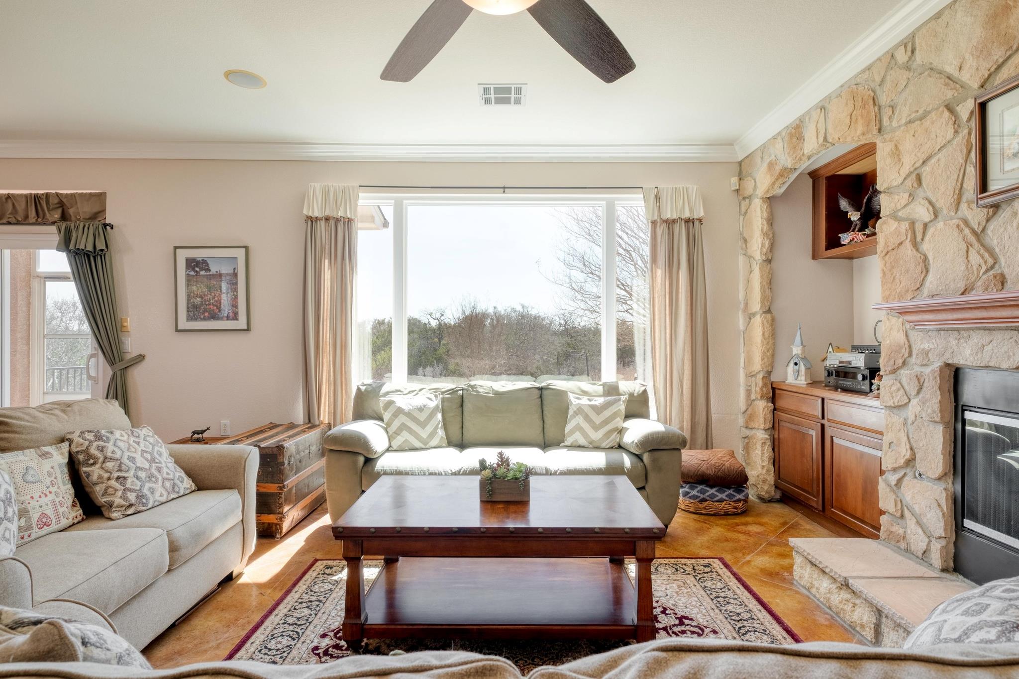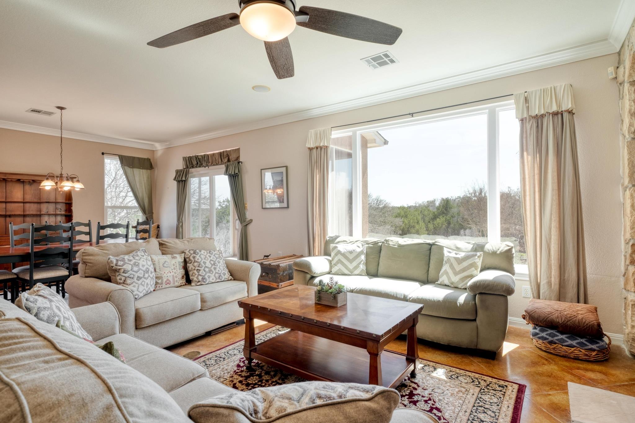 Discover refined Hill Country living in the prestigious, gated River Ridge Ranch, a scenic 1,200-acre community nestled along the Lampasas River just 29 miles from Georgetown. Situated on 3.38 private acres with sweeping countryside views, this custom-built home offers the perfect blend of luxury, comfort, and natural beauty. An inviting open floor plan is highlighted by a wall of oversized windows that frame the rolling land...