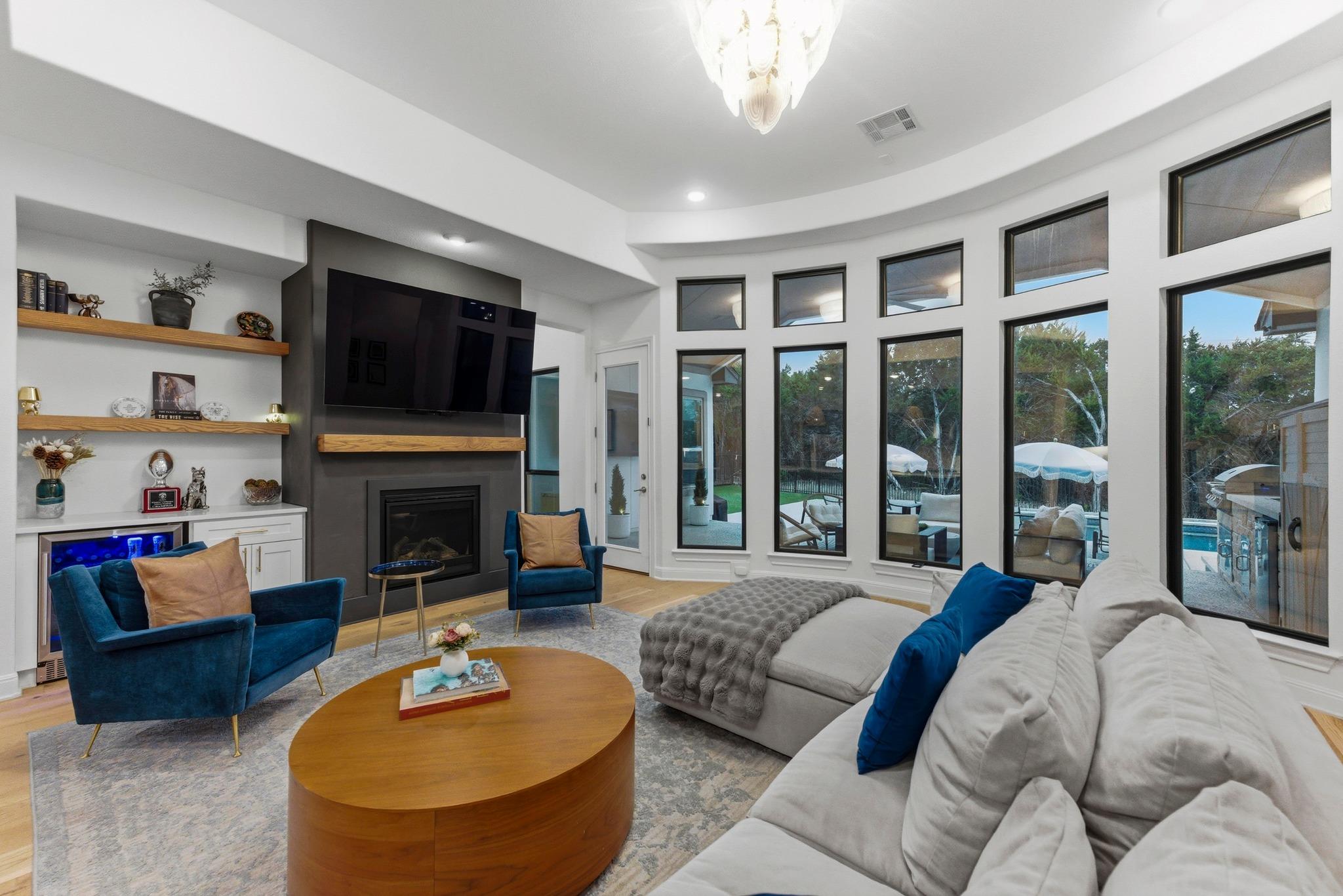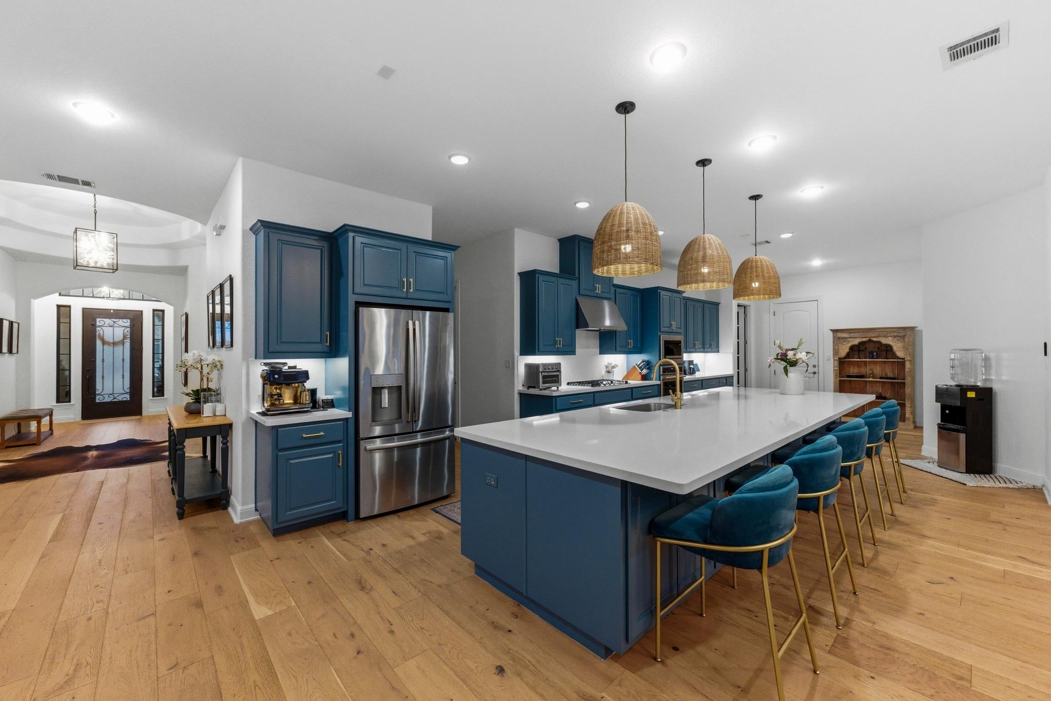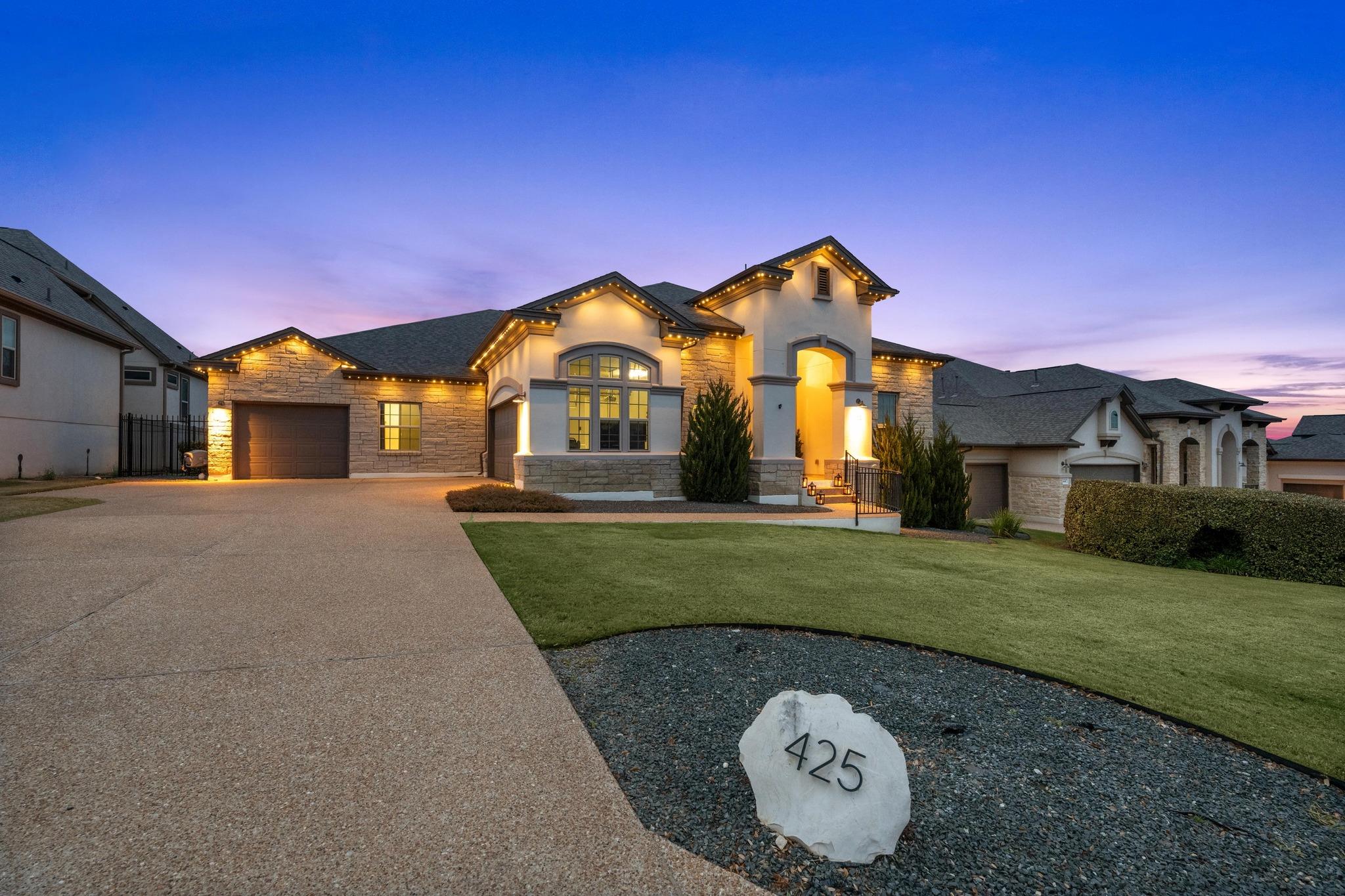 Built in 2019 and beautifully reimagined, this sumptuous single-story home blends modern luxury with effortless Hill Country living. The owners have elevated every inch with brand-new wood flooring throughout, freshly painted cabinets and walls, and stunning designer lighting that brings warmth and sophistication to every space. Spanning 3,479 square feet, the thoughtful 4-bedroom + office layout offers generous living areas, ...