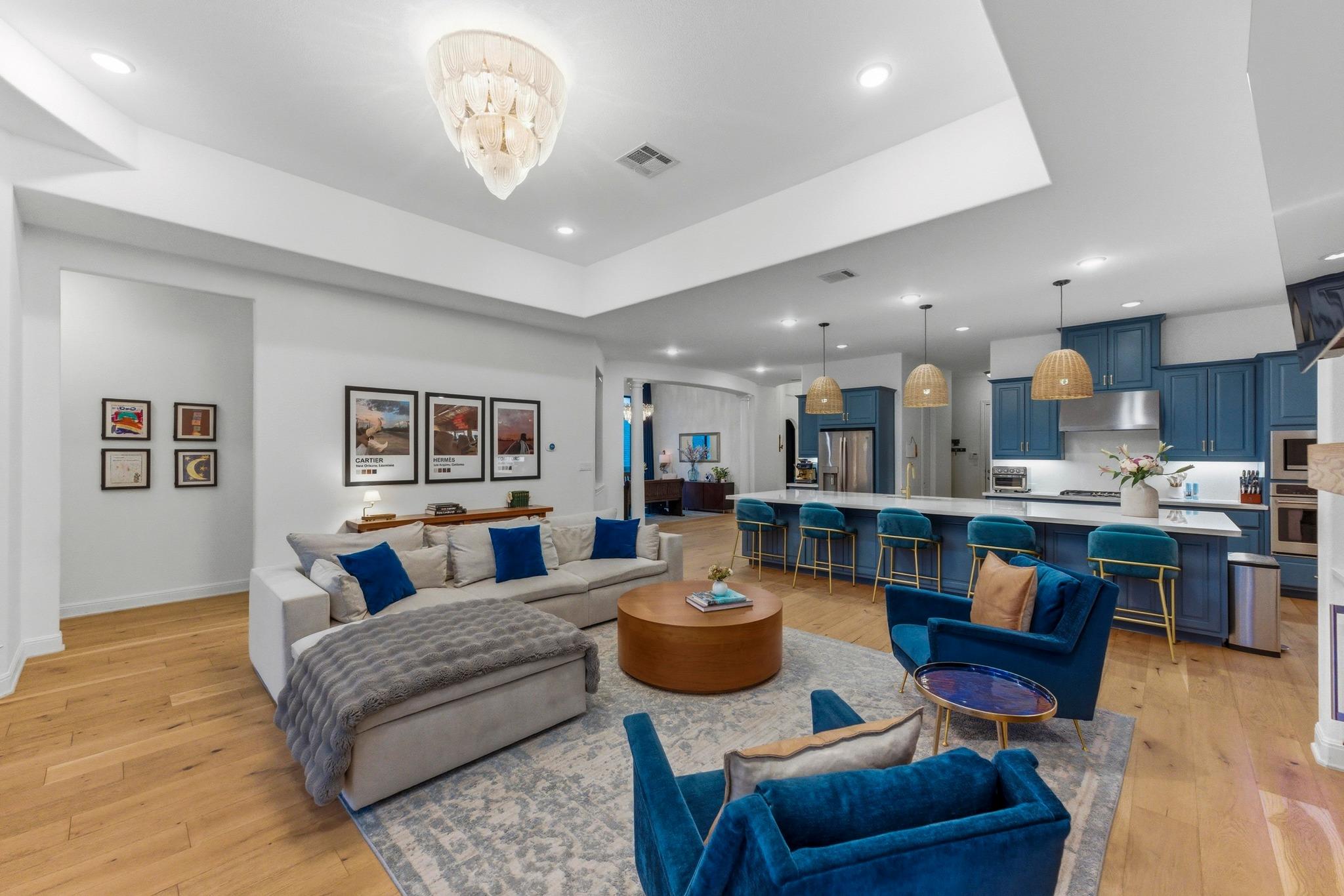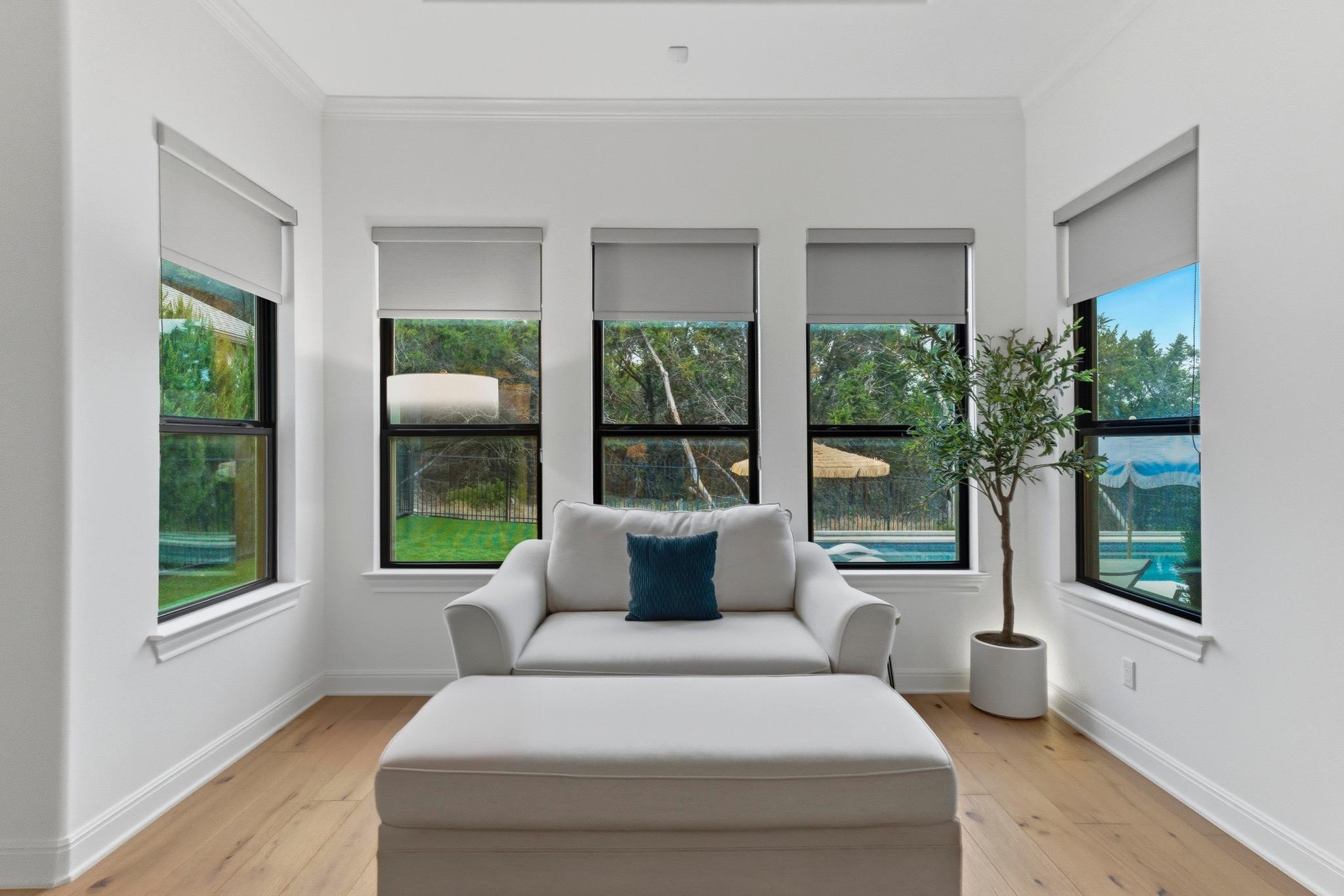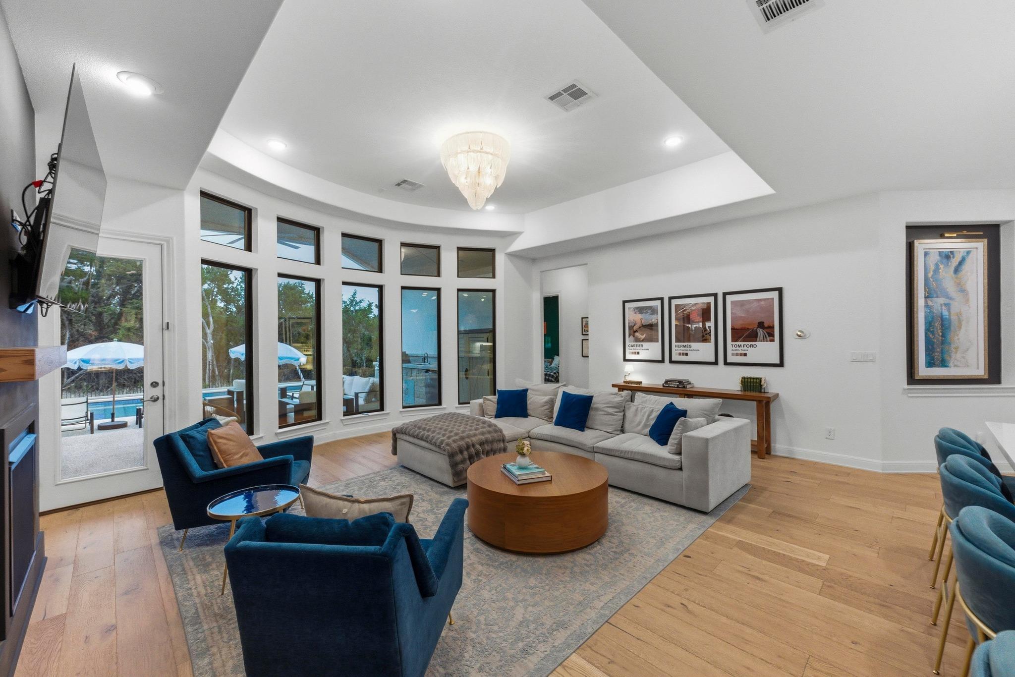Built in 2019 and beautifully reimagined, this sumptuous single-story home blends modern luxury with effortless Hill Country living. The owners have elevated every inch with brand-new wood flooring throughout, freshly painted cabinets and walls, and stunning designer lighting that brings warmth and sophistication to every space. Spanning 3,479 square feet, the thoughtful 4-bedroom + office layout offers generous living areas, ...