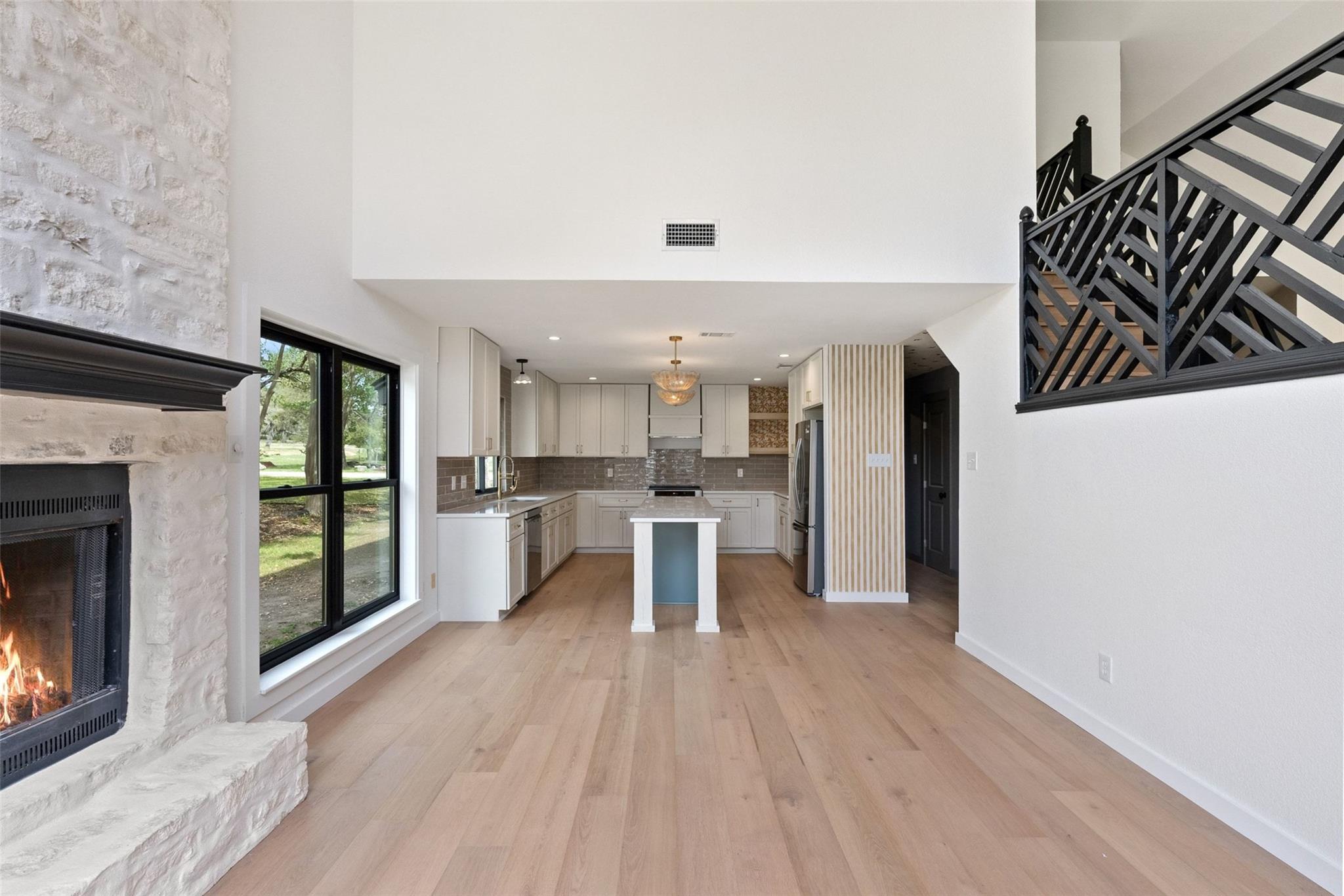 Stunning fully remodeled home in the heart of Wimberley offering over 3,000 square feet, 4 bedrooms, 4 bathrooms, a dedicated library space, and two spacious living areas. The main living room features soaring vaulted ceilings, an open and airy layout, and a striking custom stairwell that creates a beautiful architectural focal point. The second living area offers a warm, cozy vibe just off the kitchen, centered around a wood...