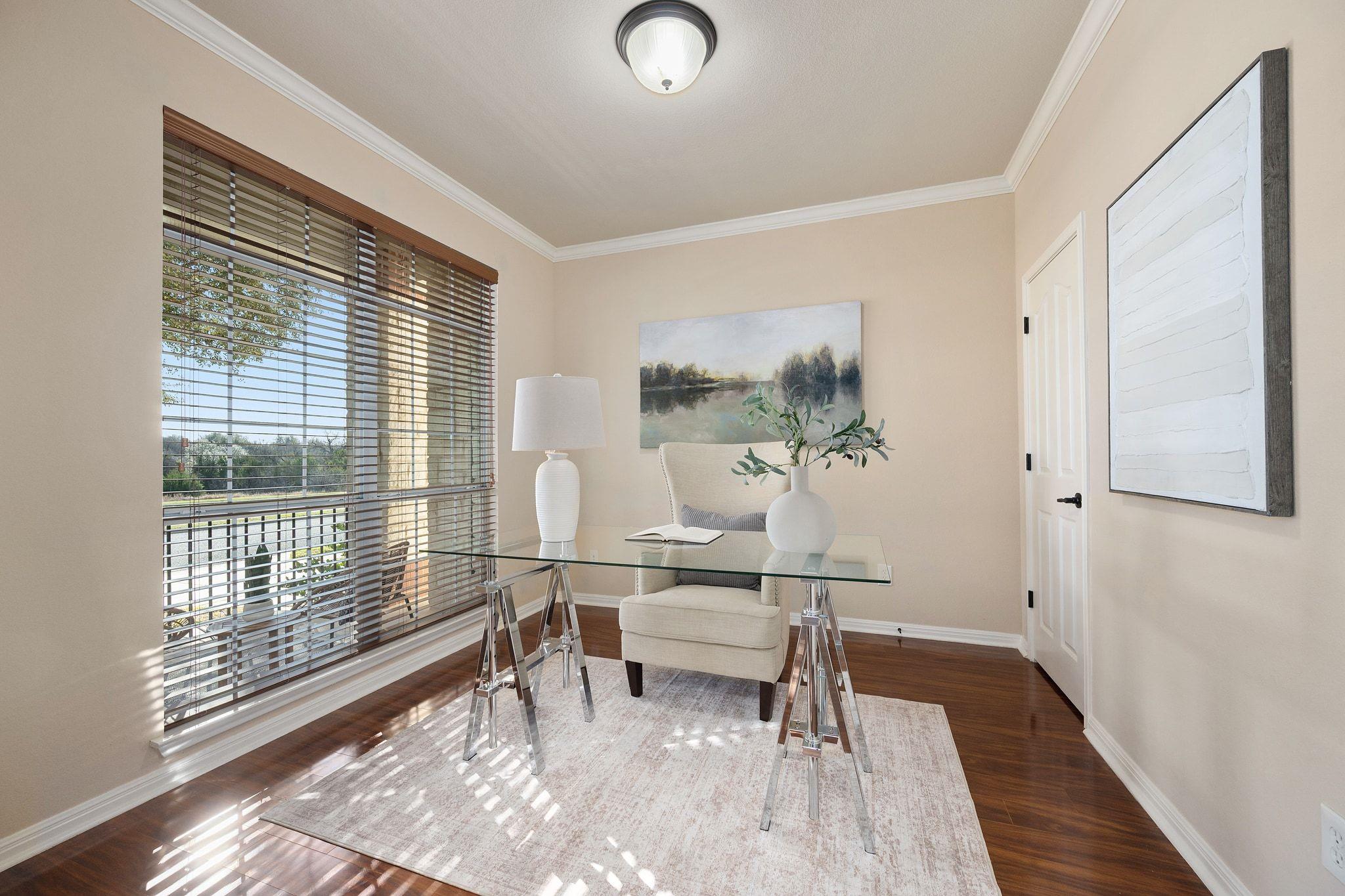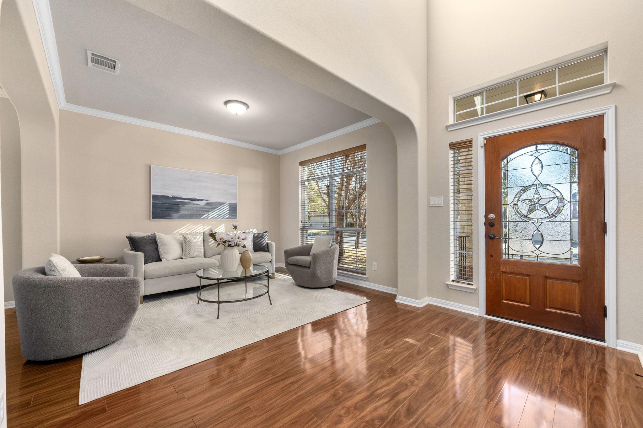 Welcome to 4412 Angelico Lane, a beautifully maintained east-facing home in Sendero Springs — where flexible design, natural light, and everyday convenience come together. Facing east, the home welcomes soft morning light each day, creating a bright start to your mornings. Enjoy open-space views from the front and direct access to community walking, jogging, and hiking trails. Wood-laminate flooring flows throughout the main l...