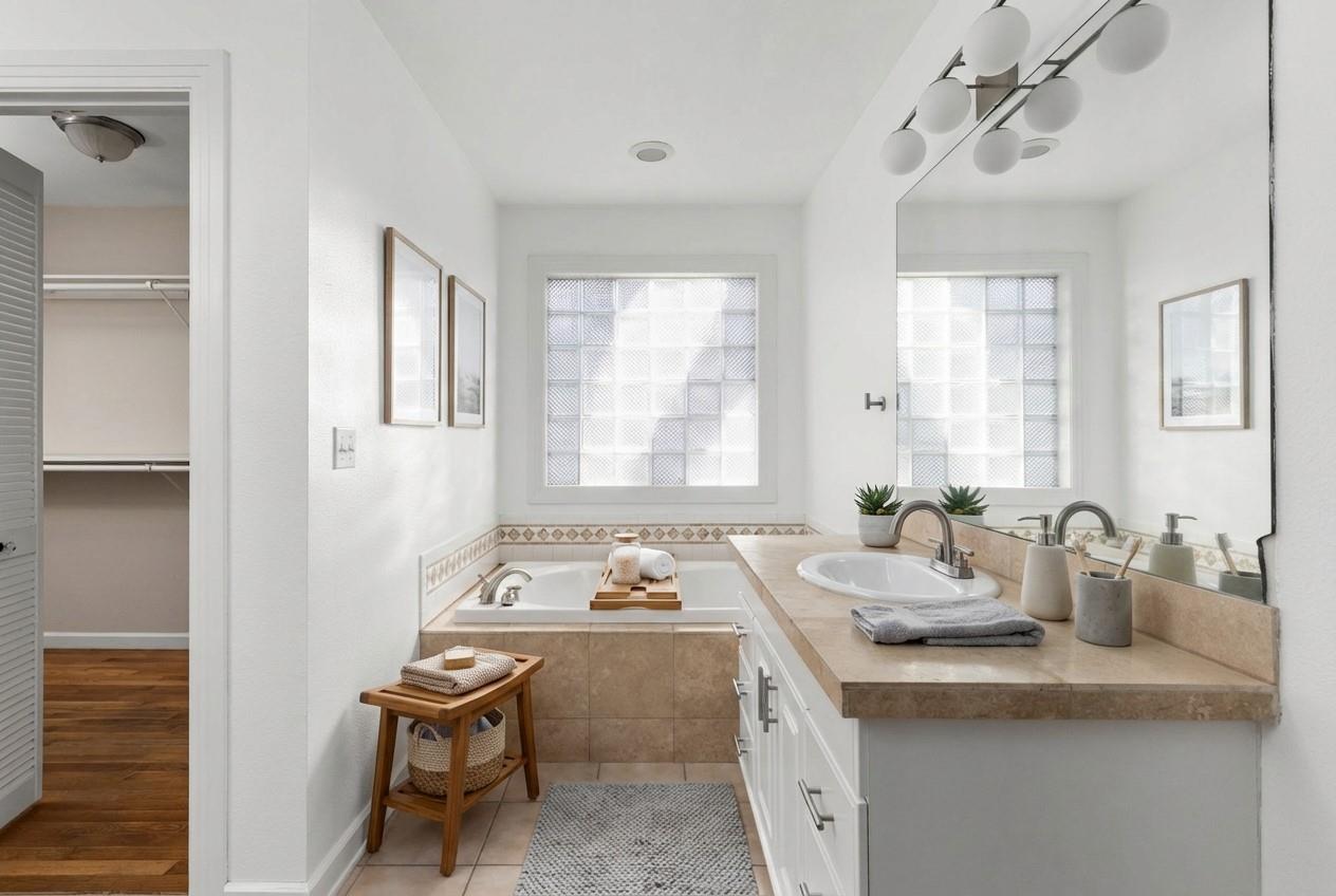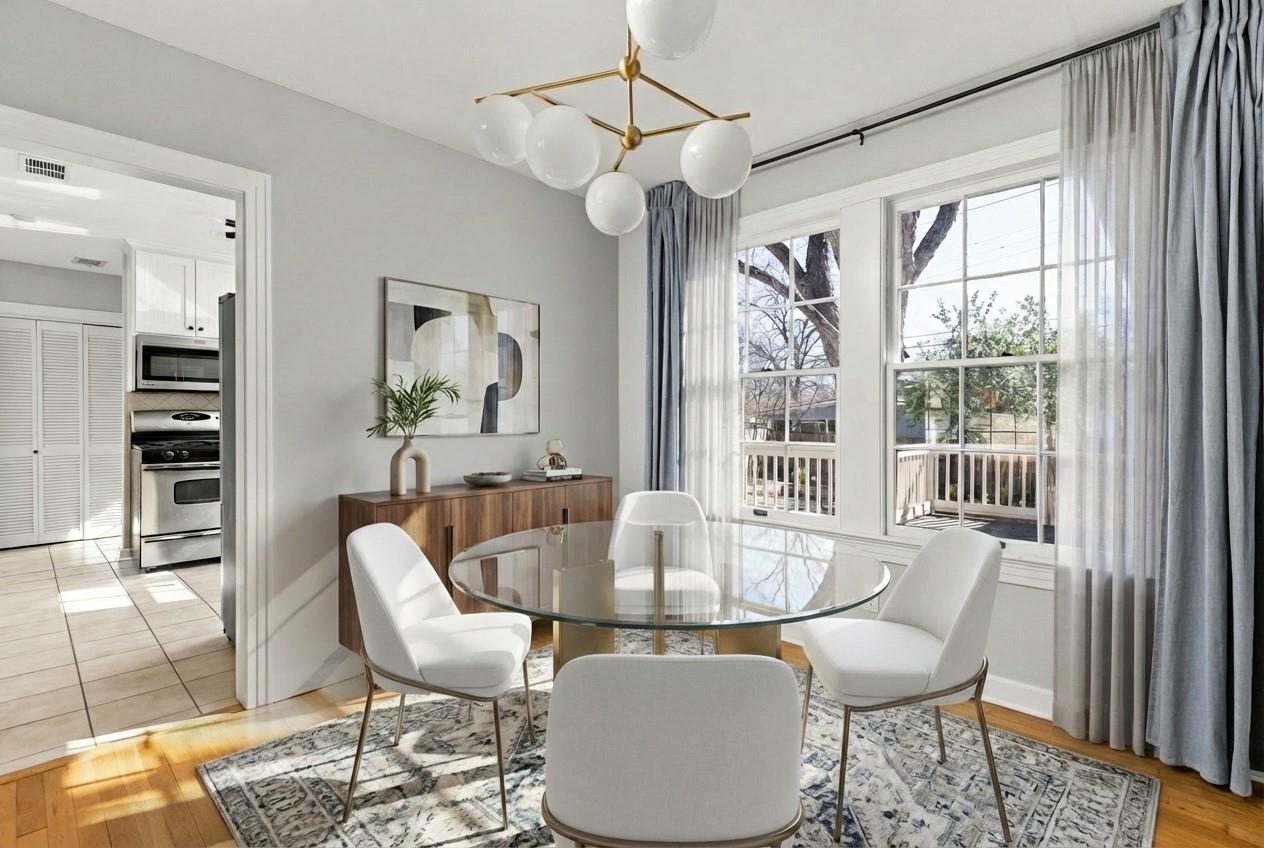 Discover this immaculate Rosedale bungalow, featuring gleaming refinished hardwoods, recessed lighting, dual living spaces and a dedicated dining room, elegantly updated with modern flair while honoring its original charm. Key 2025 updates include: attic insulation, HVAC and plenum, house leveling, stucco/paint on skirt, stone courtyard wall with cedar gates, gas piping, termite treatment, landscaping, fresh interior paint an...