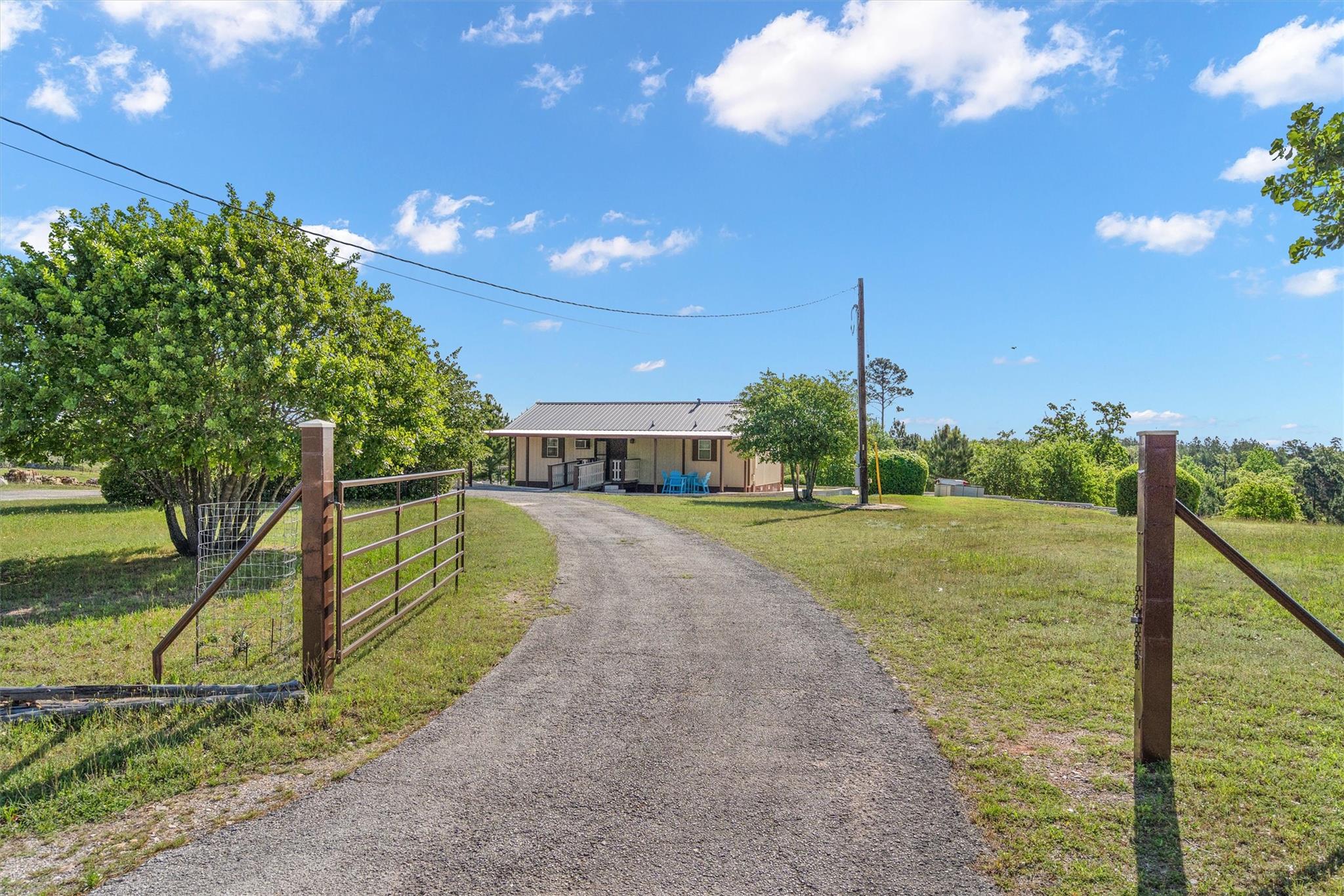 - Circular Driveway, Covered, Detached Carport, Gated