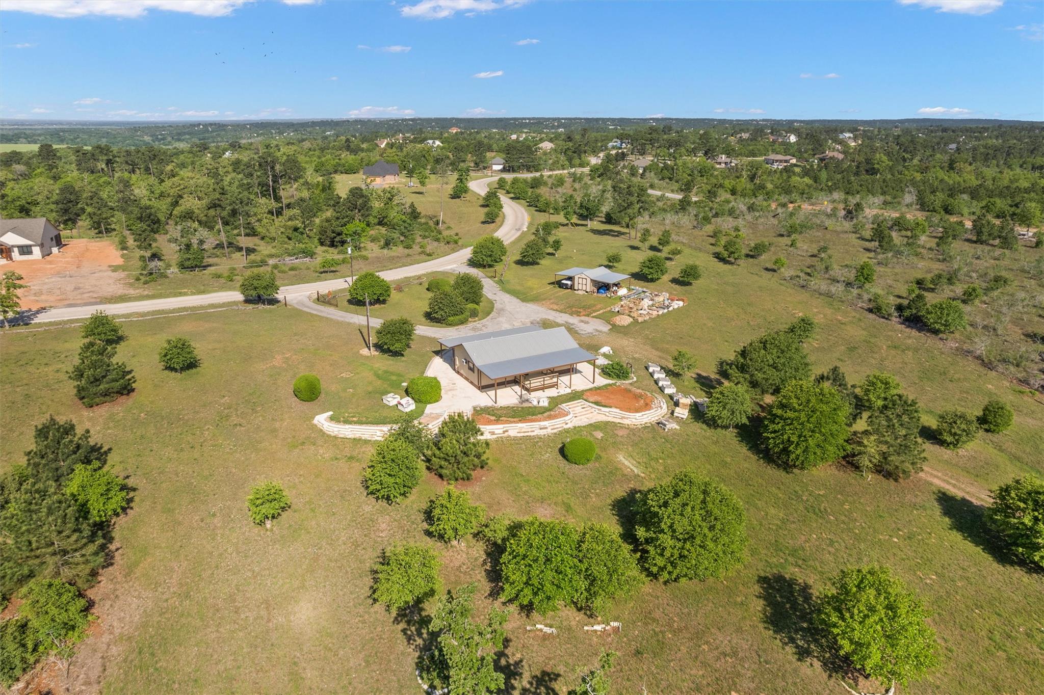 This 5.6 manicured acres offers a 800 SF custom home with a view of the sloping acres, beautiful trees, wildlife and a pond !! Enjoy from the large hand crafted limestone wraparound patio, partially covered!! This place is an oasis ready for its new owner ! Great location, Close to shopping, dining and golf courses but still in the country ! Houston Toad exemption offers low taxes, check with LPHCP administration for more details.