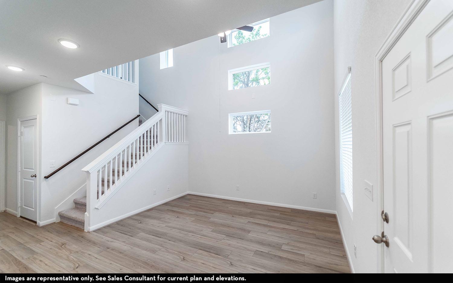 Entering the townhome, you are met with the spacious kitchen along with the sizeable, two-story family room perfect for entertaining gatherings of any size. Your kitchen comes fully equipped with an island with seating. The kitchen also features stainless steel appliances, designer lighting, gorgeous countertops, and a walk-in pantry. Past the stairs, you will come across your convenient downstairs powder bathroom and entry to...
