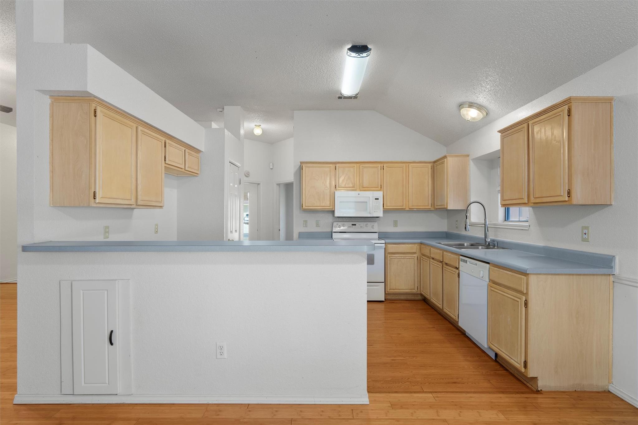 Welcome to this charming and practical home nestled in a prime location with no HOA, offering both comfort and freedom of ownership. Step inside to discover a well-designed floor plan filled with natural light, high ceilings, and luxury vinyl plank flooring that adds both warmth and durability. The inviting kitchen features laminate countertops, a breakfast bar, abundant light wood cabinetry with convenient pull-out drawers, s...