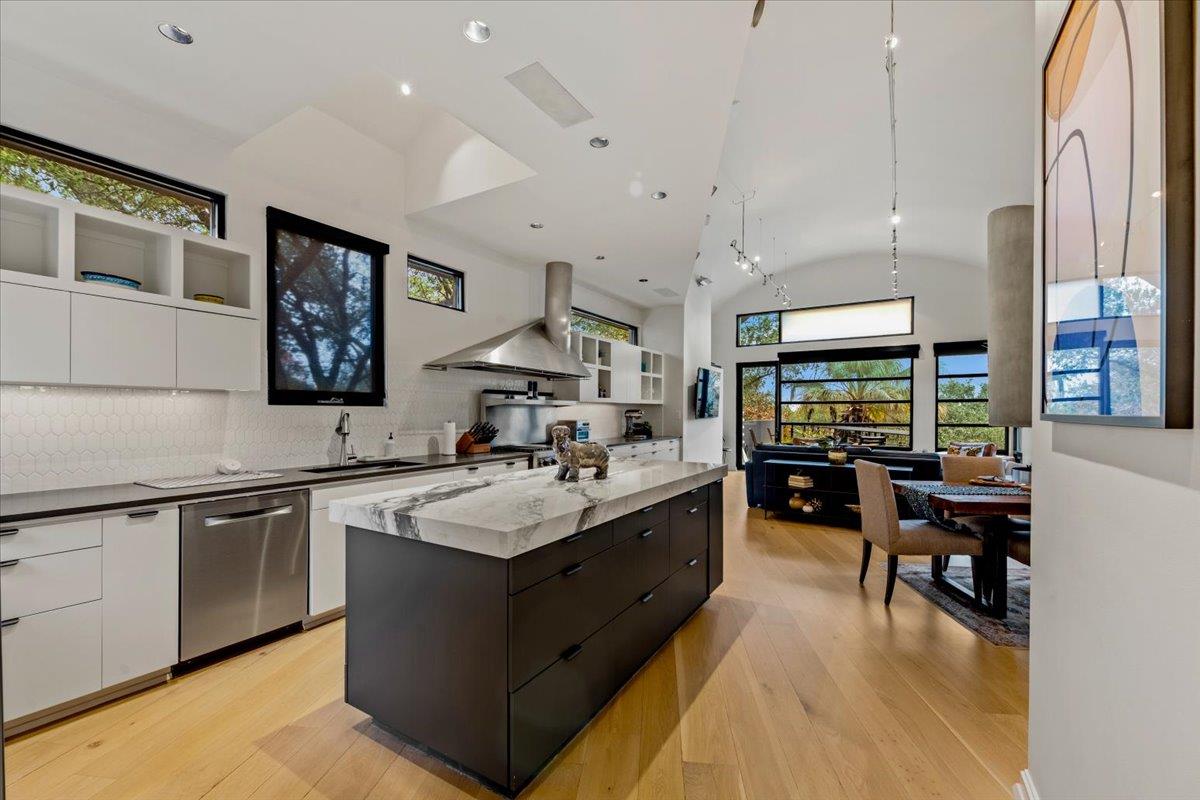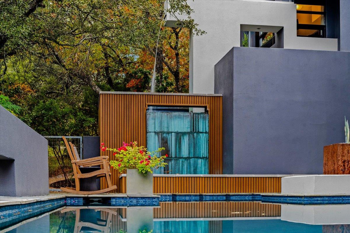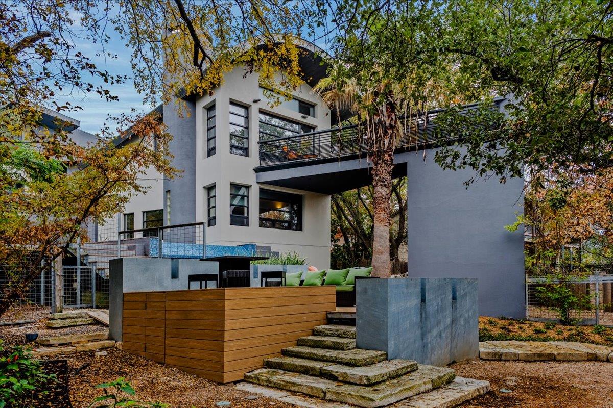 Dick Clark design with influence from Mexican architect Legoretta featured on 2001 AIA Tour of Homes. Published in numerous magazines & received national recognition for its stunning architecture. Steel framed construction, 5 Star Highest Green Rating by Austin's nationally acclaimed Green Builder program; Features include: lifetime metal roof, new landscaping, downtown view, open floor plan, European light fixtures, double pa...