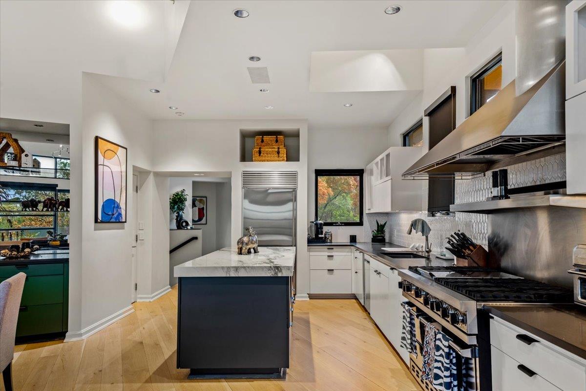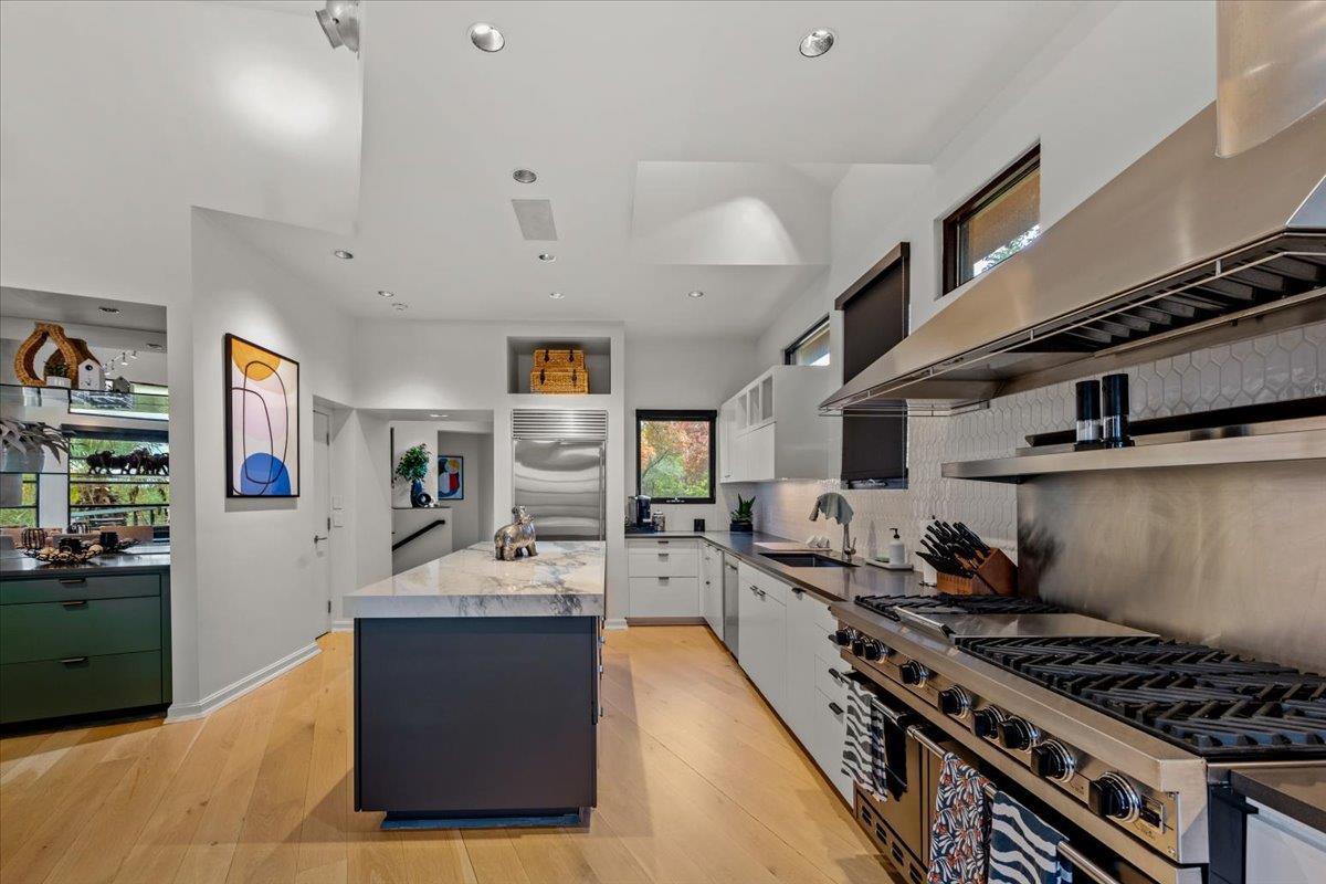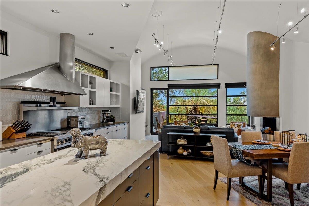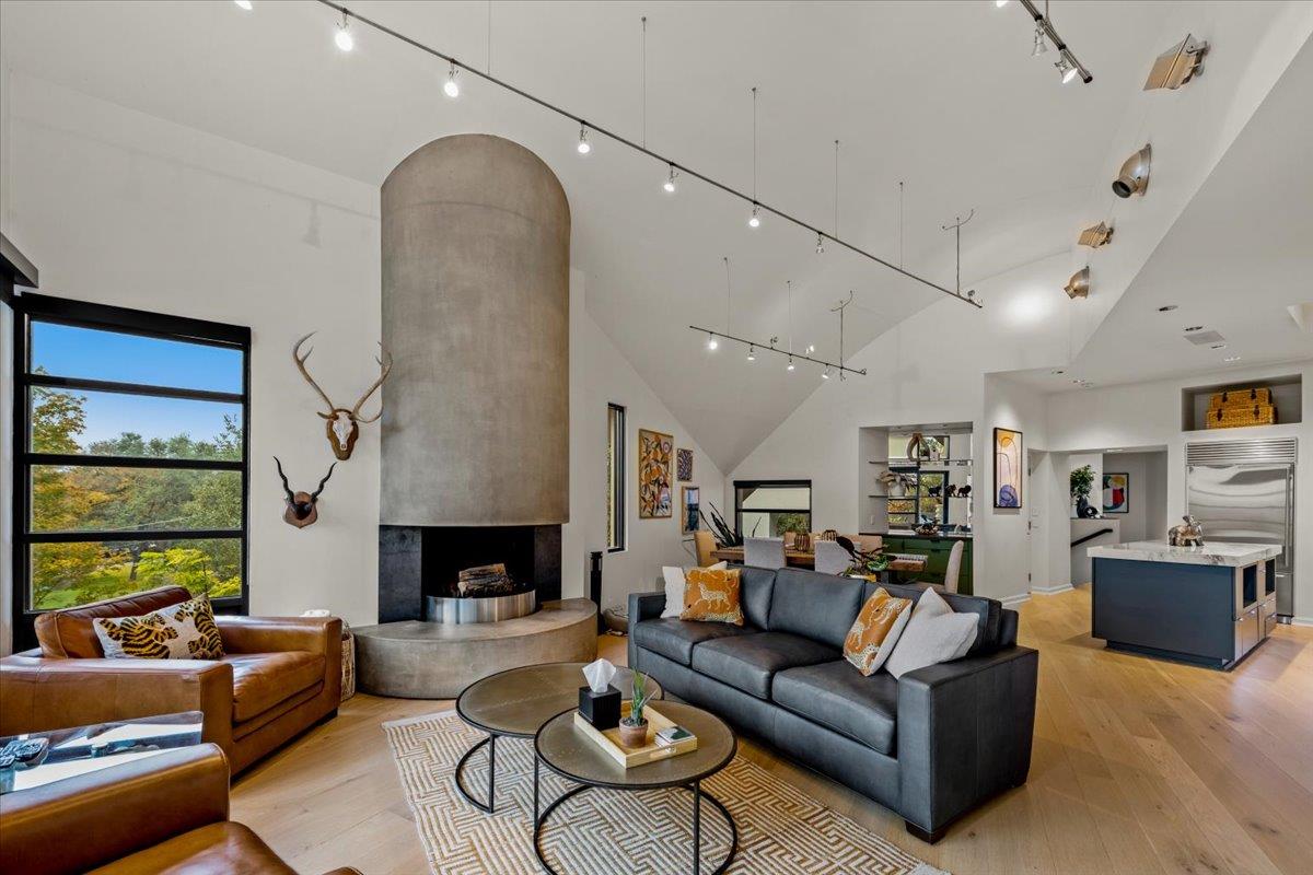Dick Clark design with influence from Mexican architect Legoretta featured on 2001 AIA Tour of Homes. Published in numerous magazines & received national recognition for its stunning architecture. Steel framed construction, 5 Star Highest Green Rating by Austin's nationally acclaimed Green Builder program; Features include: lifetime metal roof, new landscaping, downtown view, open floor plan, European light fixtures, double pa...