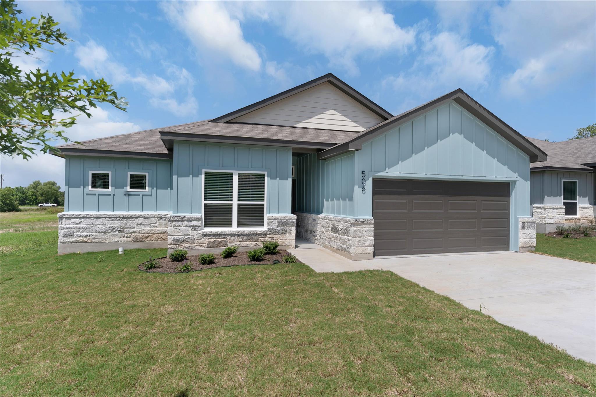 ZERO DOWN THRU USDA New Construction 100% complete Large open DIne and Living Center Island in Kit Stainless Appliances , large master bed room dbl vanity in master bath bath .walk in shower with bench with large walk in closet. Large ope living area Carpet and Luxury Vinyl Plank. Garage door opener Sprinkler system Front and side full sod back 20 ft out