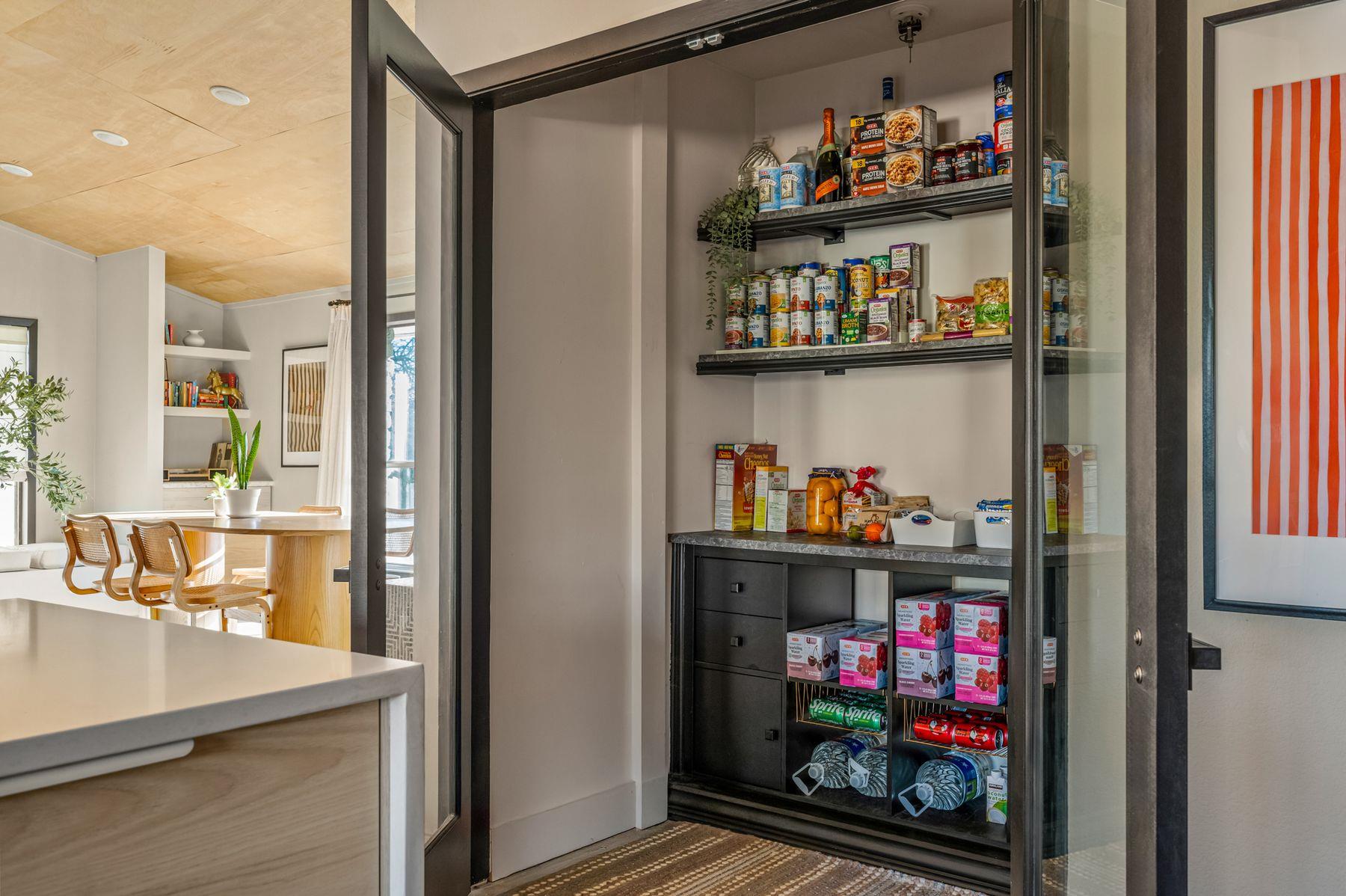 - Bookcases, Built-in Features, Ceiling Fan(s), Ceiling-High, Quartz Counters, Eat-in Kitchen, Kitchen Island, No Interior Steps, Open Floorplan, Pantry, Primary Bedroom on Main, Recessed Lighting, +4 more