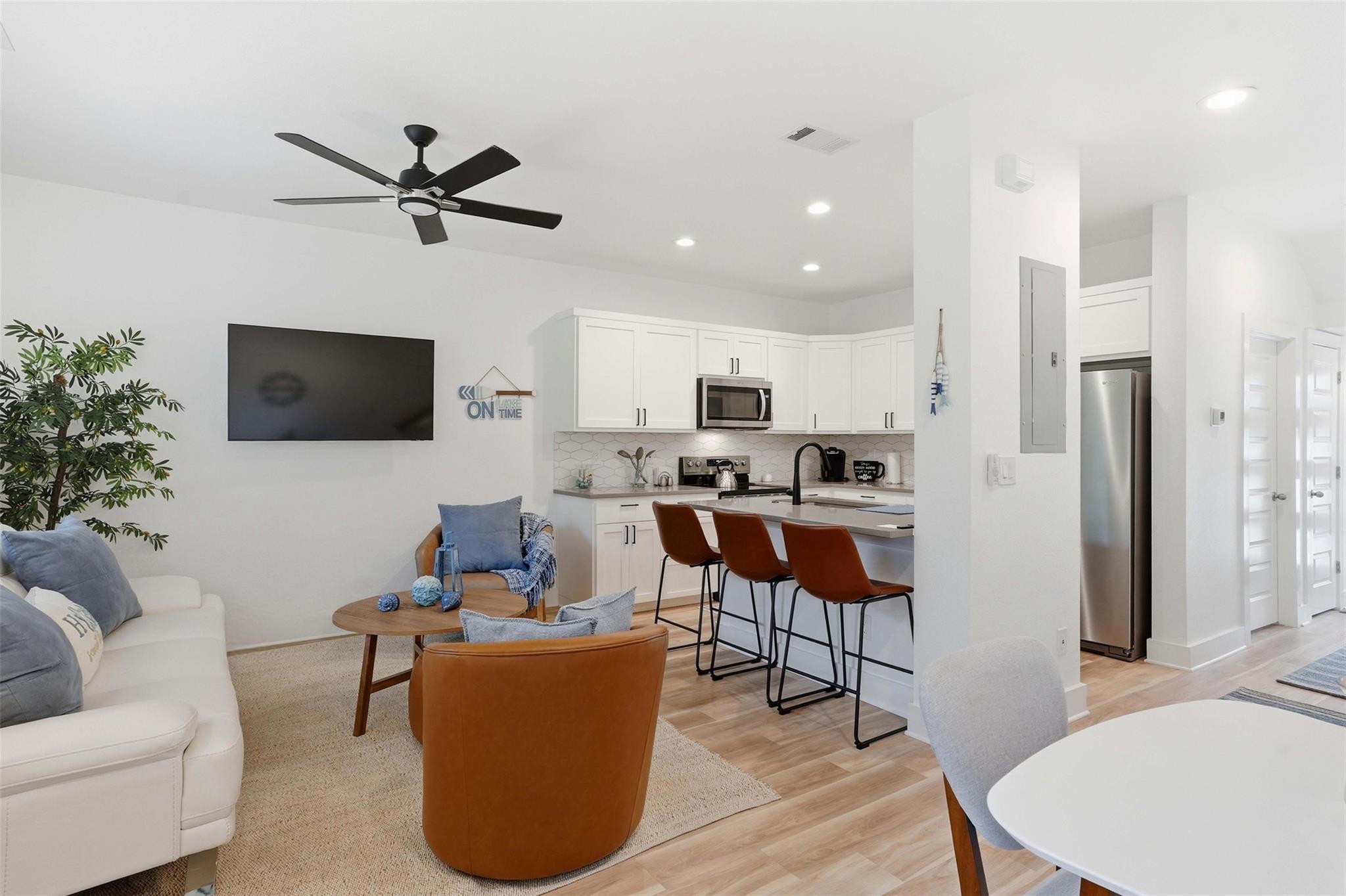 Beautifully designed offering comfort, tranquility, and ease of living in the heart of the Texas Hill Country perfect for those looking to enjoy a relaxed, low-maintenance lifestyle.The open-concept kitchen flows seamlessly into the living area, elegant finishes, and whisper-quiet, self-closing cabinetry. Light luxury vinyl plank flooring enhances the bright, clean feel throughout, while the like new furniture is negotiable ma...