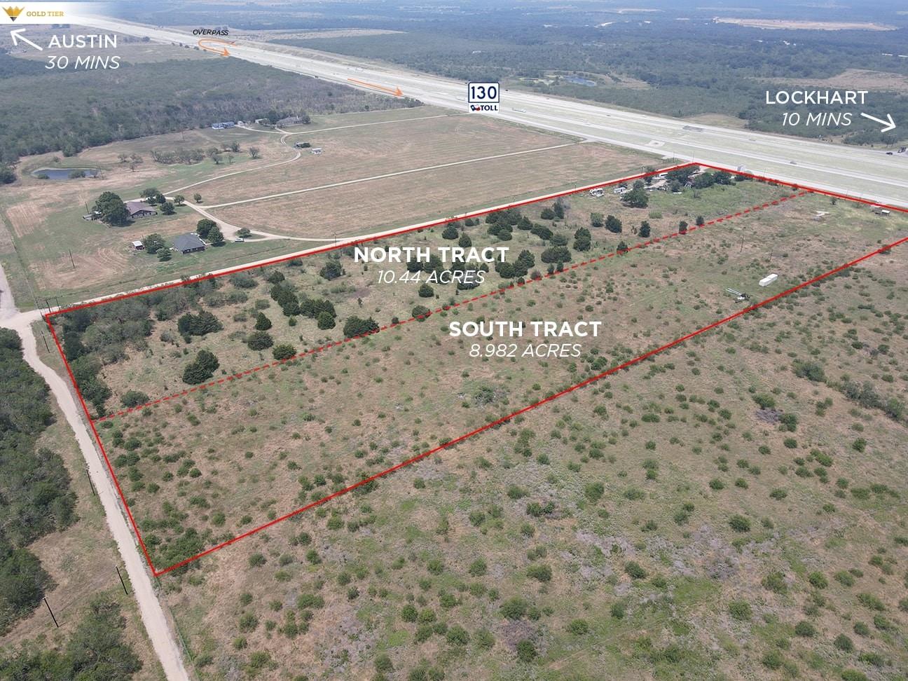 Gold Tier is proud to present a total of 19.422 acres on Toll 130 near Lockhart, Texas. The owner WILL subdivide into a 8.98 acre tract and a 10.44 acre tract. The price is $135,000/acre. This property offers excellent ingress and egress with nearby on-ramps and off-ramps (see page 4 of the brochure for details). The seller has preliminary plans for industrial outdoor storage, flex industrial, and boat/RV storage. With n...