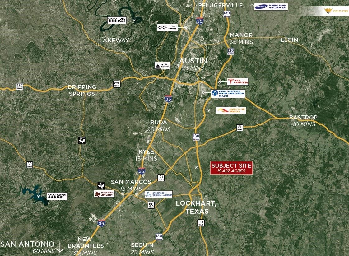 Gold Tier is proud to present a total of 19.422 acres on Toll 130 near Lockhart, Texas. The owner WILL subdivide into a 8.98 acre tract and a 10.44 acre tract. The price is $135,000/acre. This property offers excellent ingress and egress with nearby on-ramps and off-ramps (see page 4 of the brochure for details). The seller has preliminary plans for industrial outdoor storage, flex industrial, and boat/RV storage. With n...