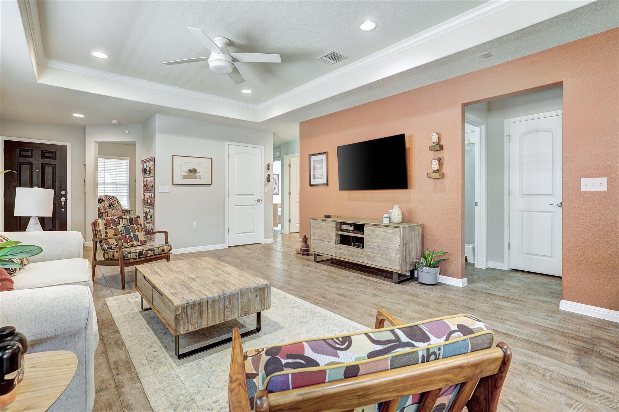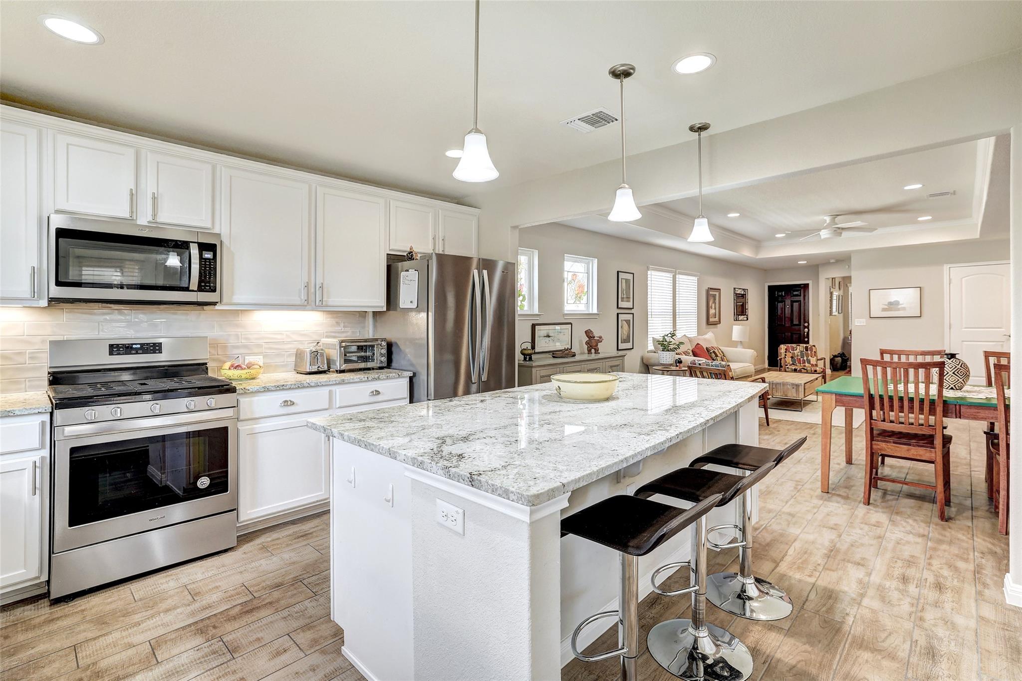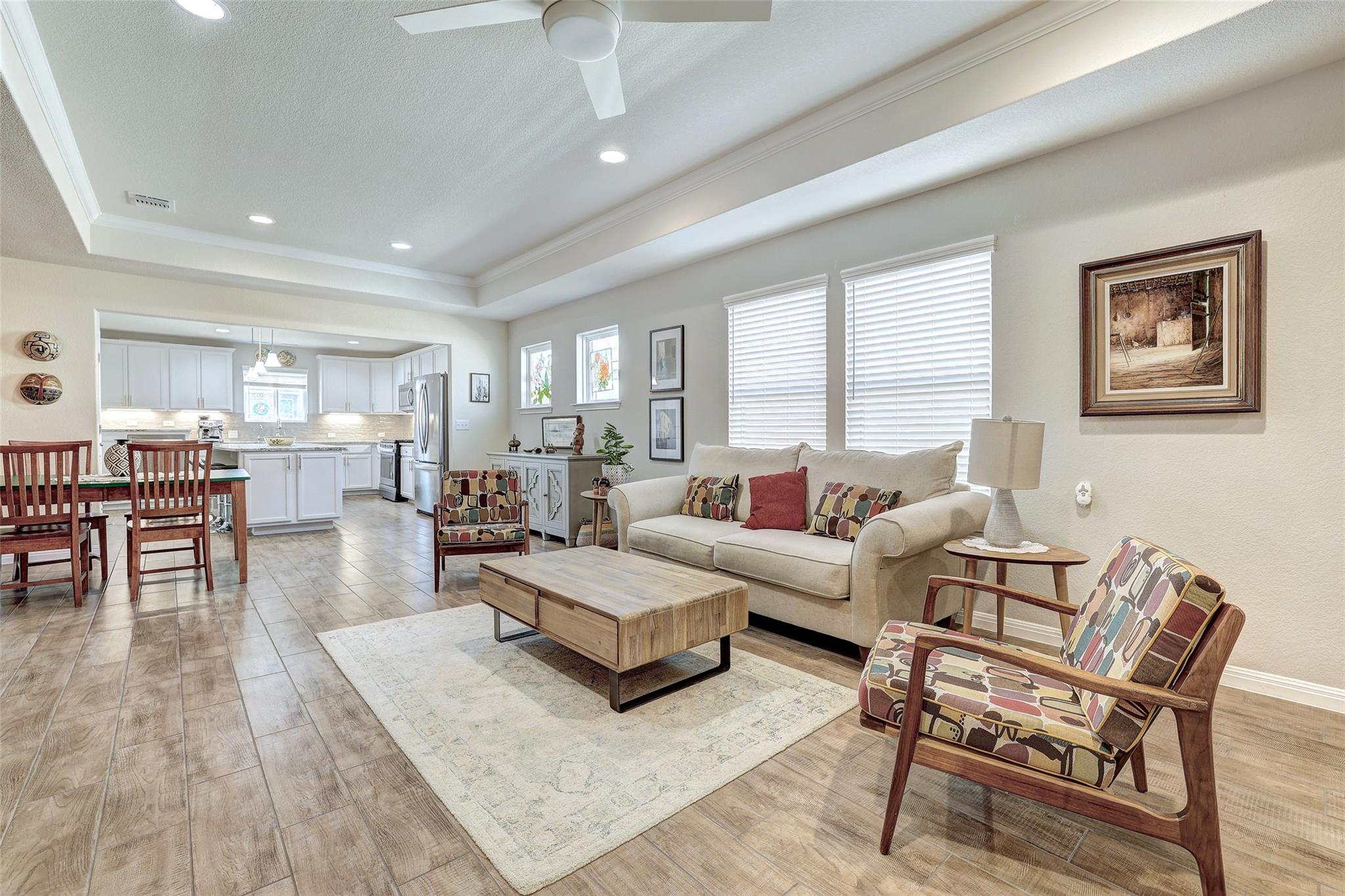 Located in Sun City Texas in Georgetown, TX, this move-in ready 2020 Taft floor plan offers single-story, low-maintenance living in one of Williamson County’s most desirable 55+ active adult communities. Designed for comfort and convenience, this thoughtfully maintained home blends quality finishes with an ideal layout for downsizing or lock-and-leave living. Inside, you’ll find crown molding, tray ceilings, and durable wood-l...