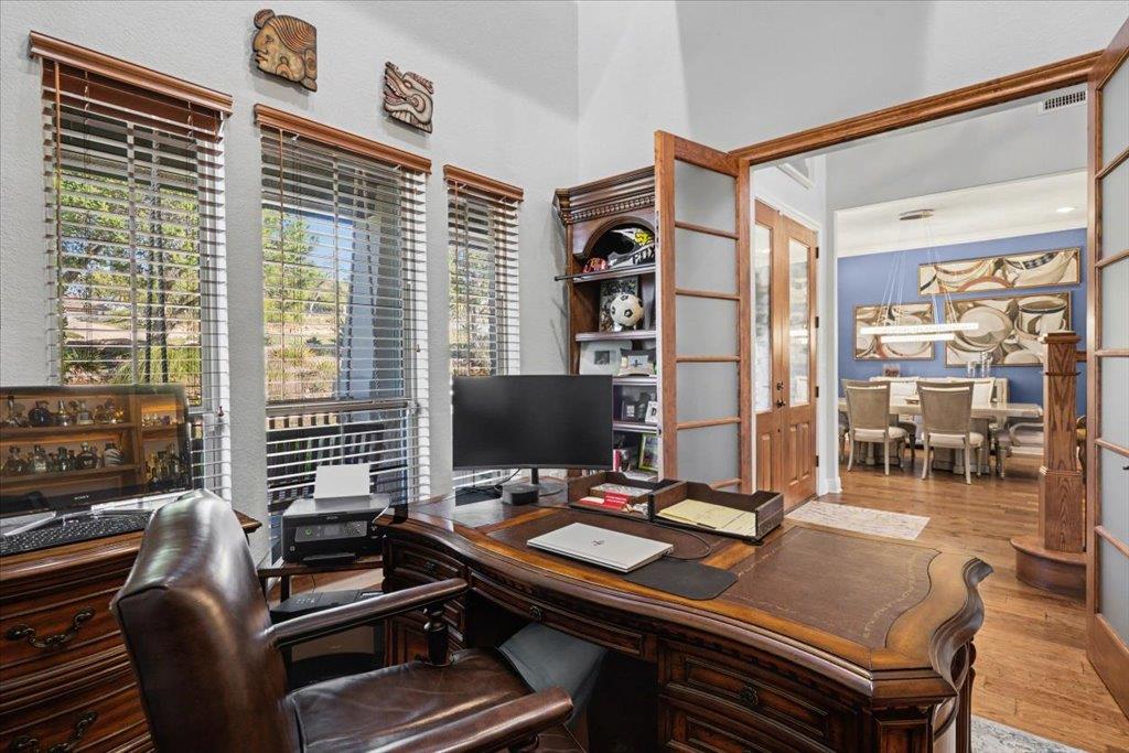 A beautifully maintained home sitting on an acre of manicured grounds with an amazing outdoor covered Living with fireplace and outdoor Kitchen all overlooking the negative-edge Pool and Spa. Indoors there is an Office and Dining flanking the Entry all leading into a Formal Living/Sitting Room. Open Kitchen to Eating area and Family Room. Massive Island to gather around. Loads of room to cook and entertain. Primary suite is on...