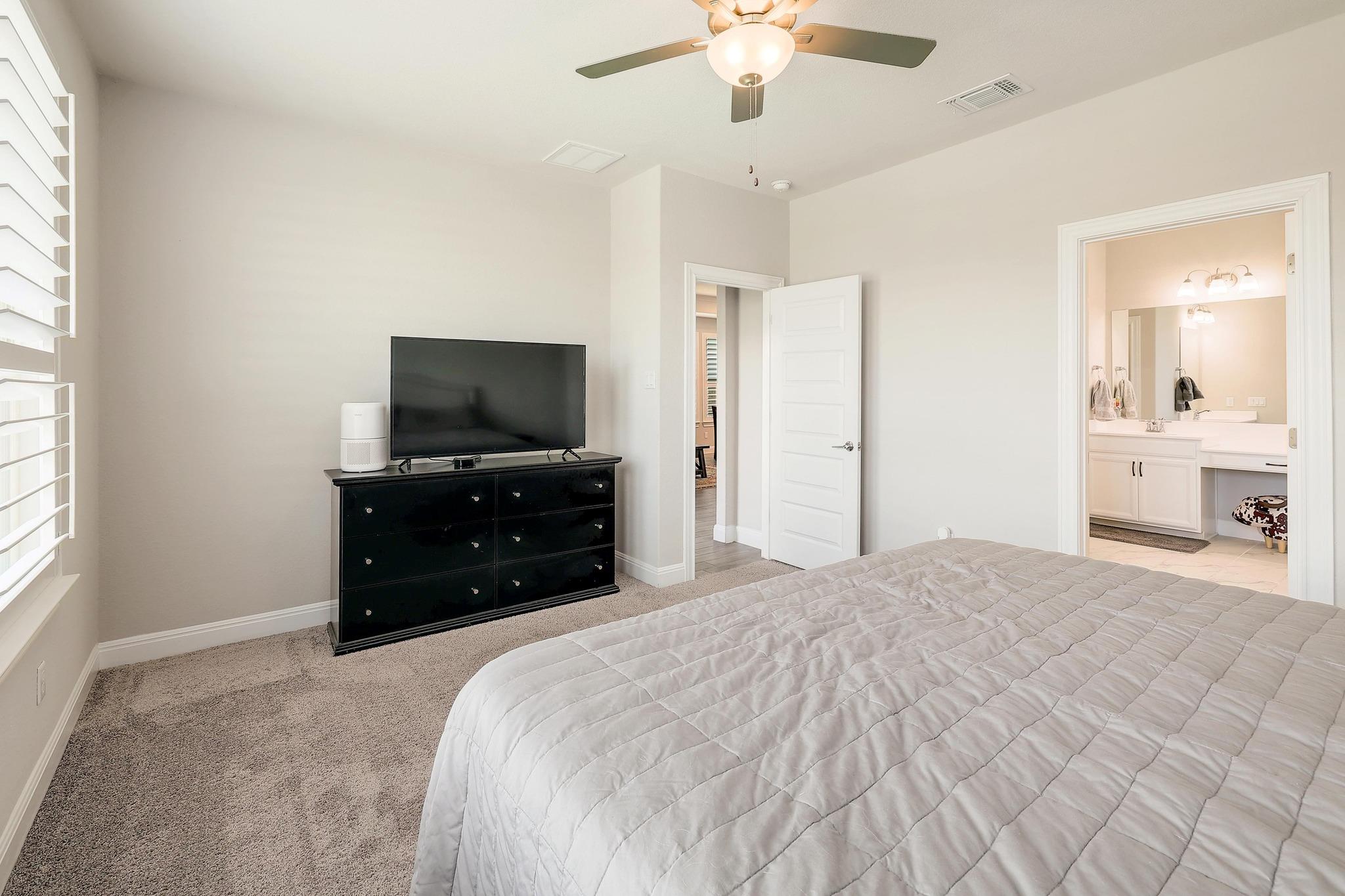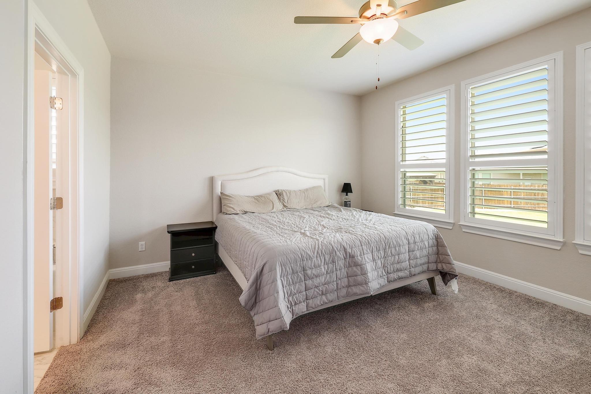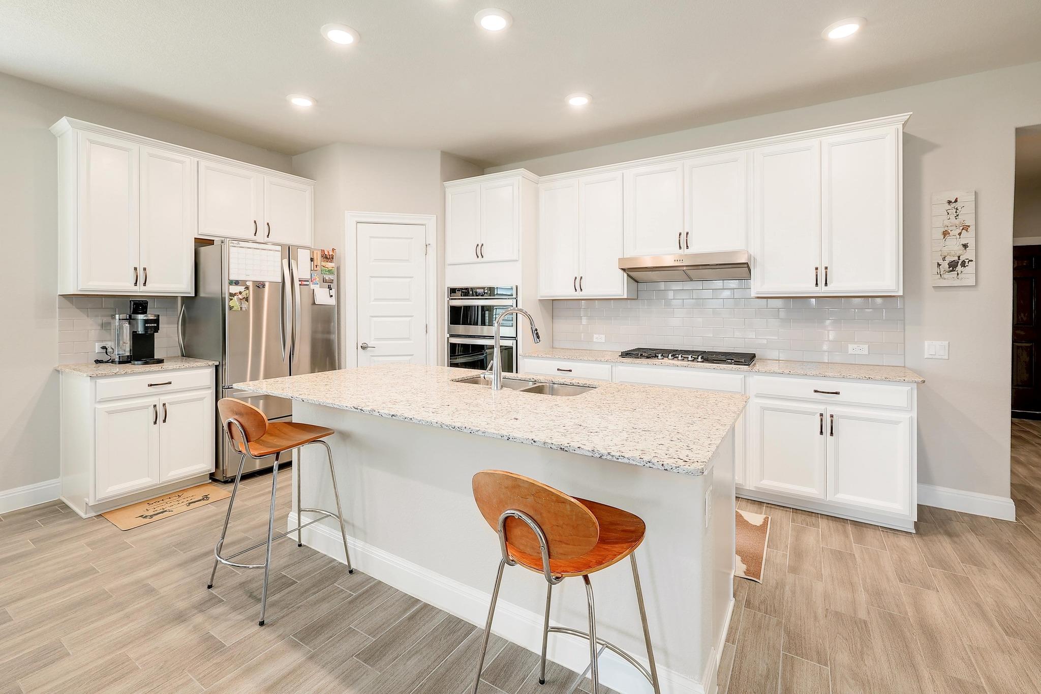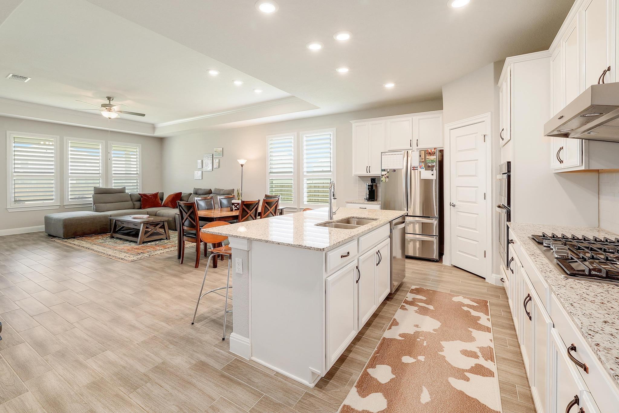 Charming Craftsman home in the highly sought-after Santa Rita Ranch South community is a gateway to the best of Hill Country living. Situated on a rare and expansive .366-acre cul-de-sac lot, this property offers the perfect blend of privacy and modern style. High ceilings and an open layout create an airy, sun-drenched atmosphere. Wood-like tile flooring flows through the home, accented by plantation shutters and tray ceilin...