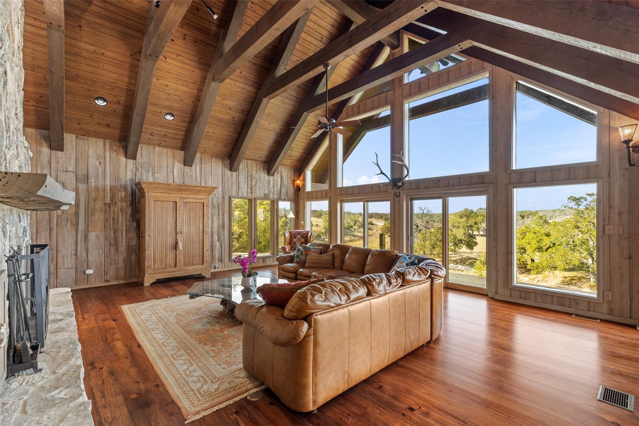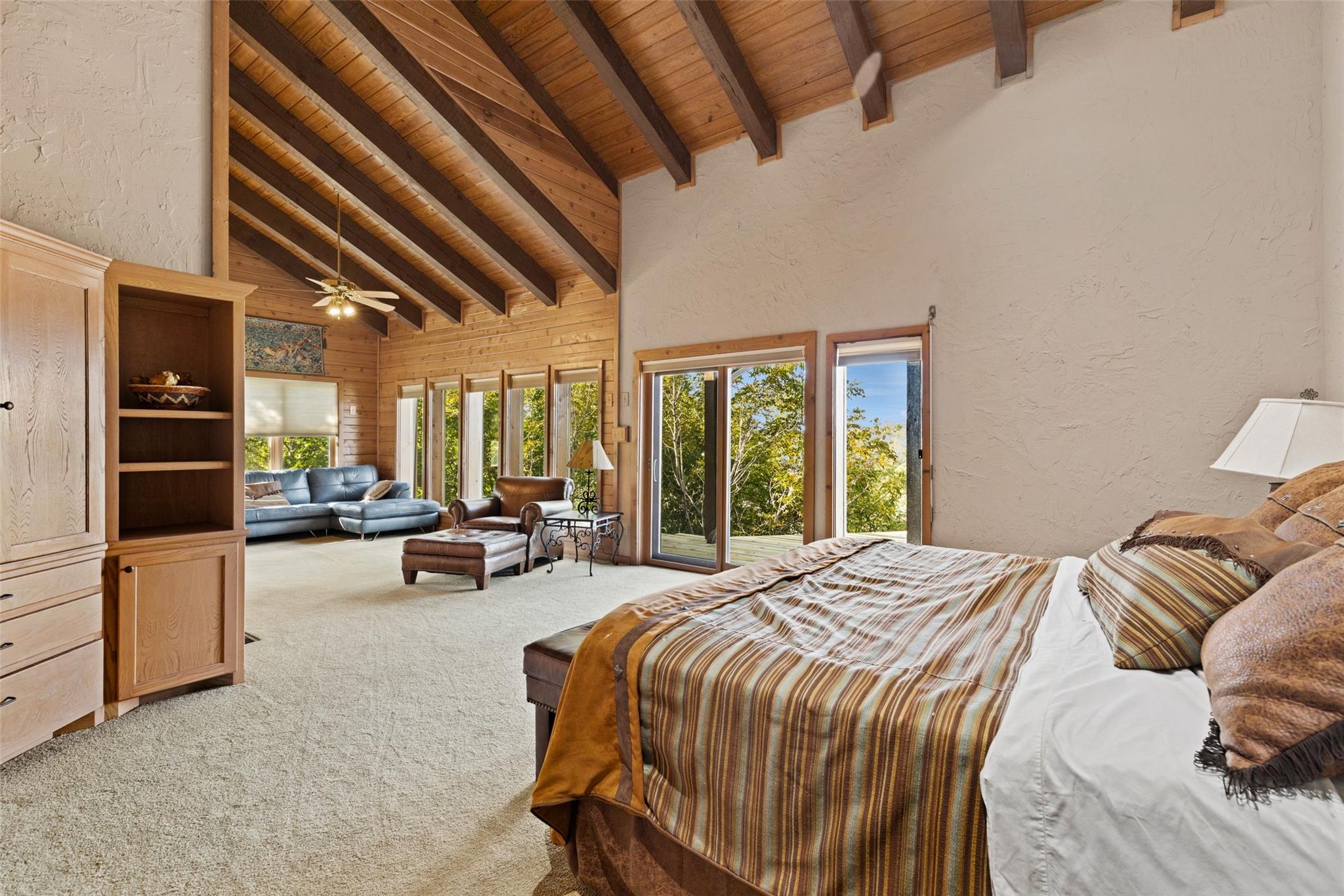 - Two Primary Suties, Bar, Bookcases, Breakfast Bar, Built-in Features, Cedar Closet(s), Ceiling Fan(s), Beamed Ceilings, Cathedral Ceiling(s), Ceiling-Vaulted, Chandelier, Granite Counters, +15 more