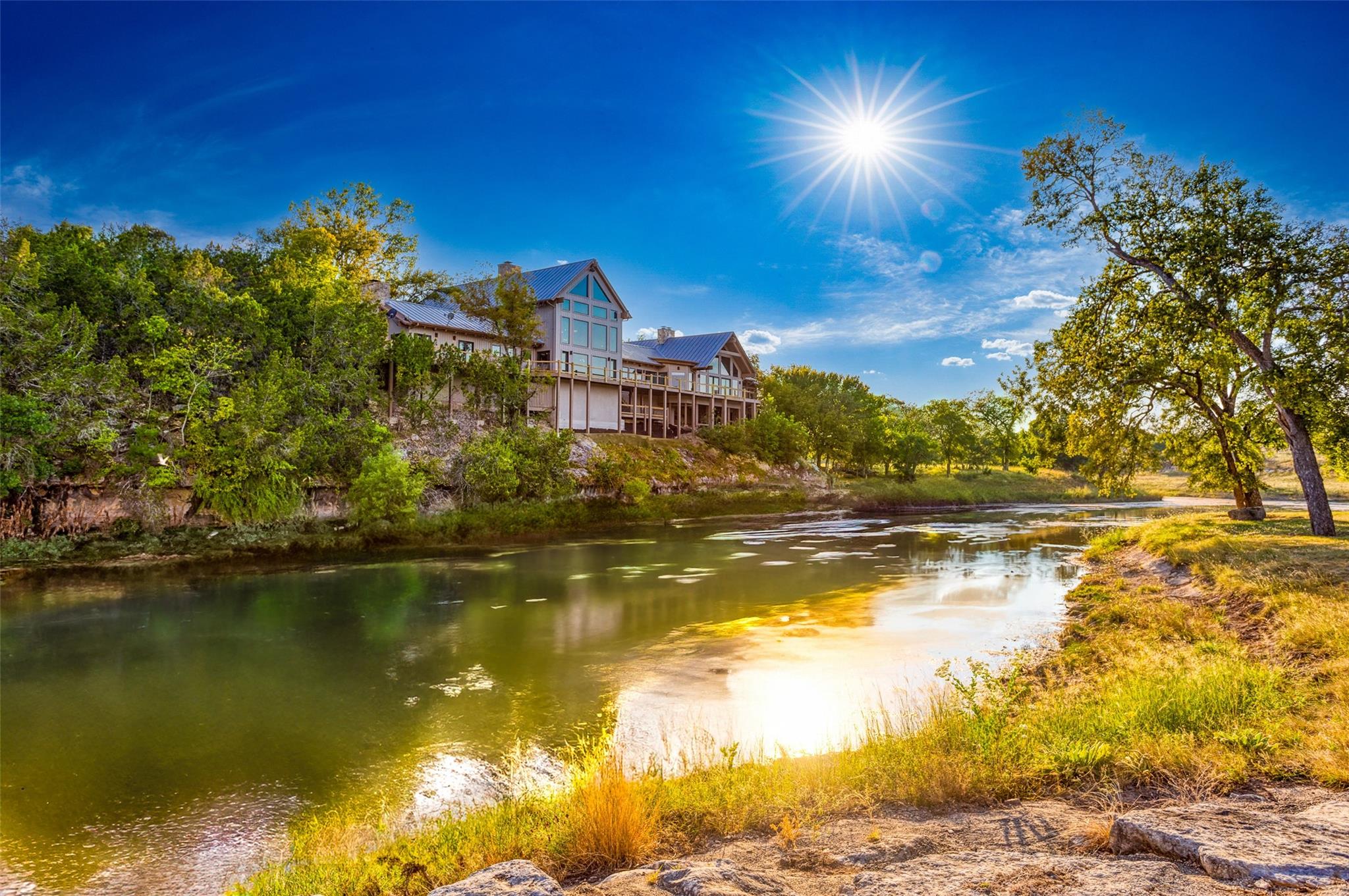 LUX Waterfront Ranch Home PRICED TO SELL!! New Updates & Turn-key! In The Heart of TX Hill Country, within the prestigious Maverick community, lies a luxurious lakeside 8,384sqft ranch home. Perfectly situated between the historic towns of Fredericksburg & Kerrville, this property offers the ideal blend of country solitude with easy access to urban conveniences, vibrant local culture,& renowned wineries. The Lake House: surrou...