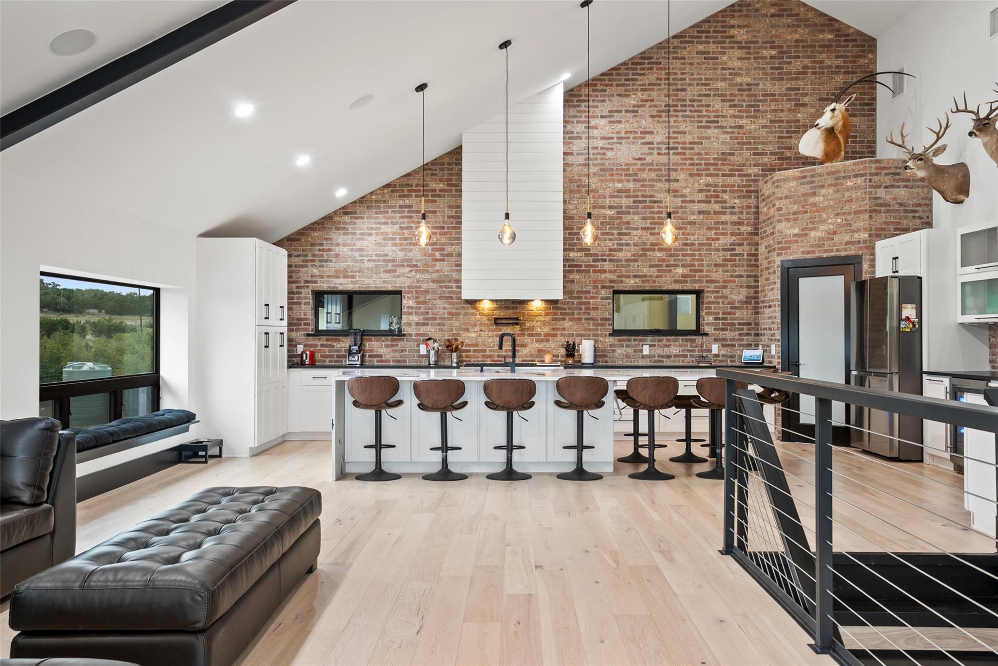Astonishing Hill Country views surround this sprawling 4,950 sq. ft. barndominium, expertly constructed with robust 12” and 16” I-beam steel framing for unmatched strength and enduring quality. Set on 12.938 AG exempt acres, the property is framed by majestic oak trees and fully enclosed by a 5 ft no-step pipe horse fence, ready for your horses or ag animals. The residence offers 3,352 sq. ft. of luxury living space paired wit...