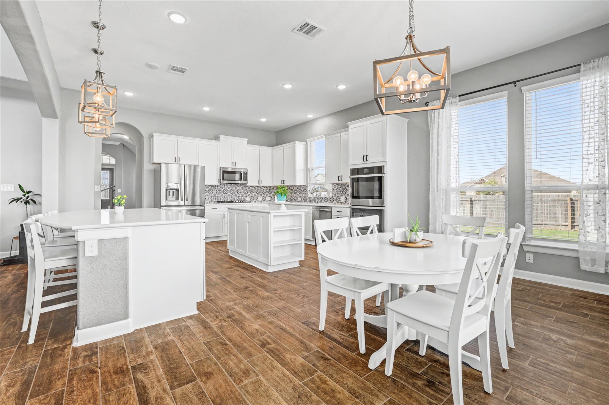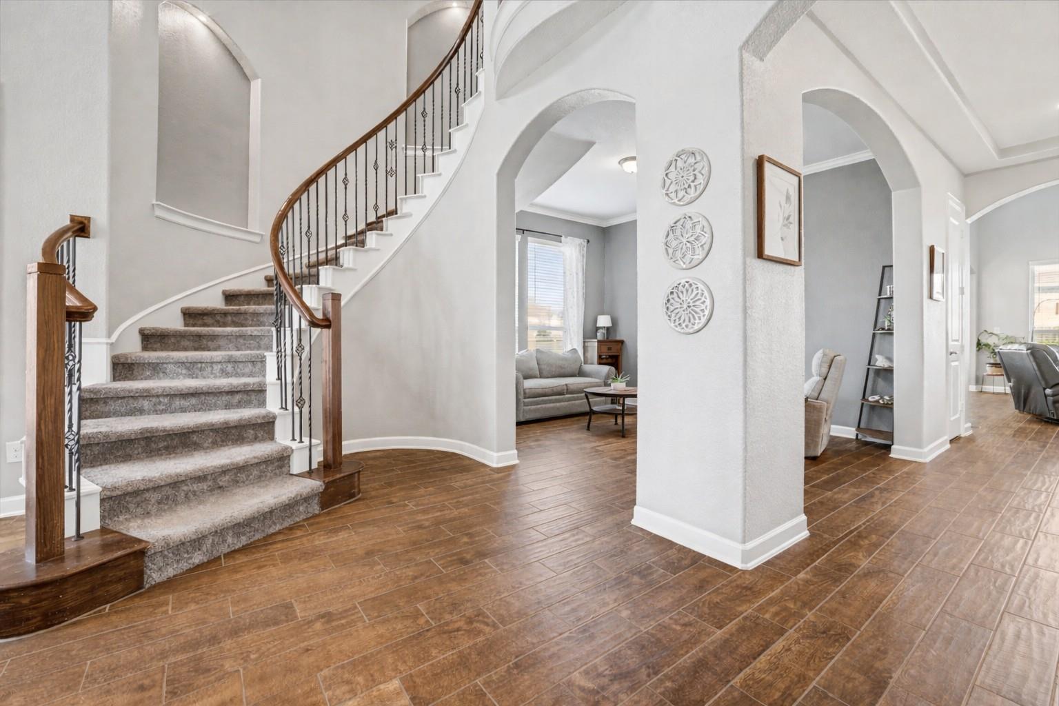 From the moment you step inside, this home makes a statement—blending grand design, thoughtful upgrades, and standout features throughout this beautifully designed Laguna II floor plan. It also has a 3 car garage with a full 3 car driveway! A dramatic two-story foyer with a sweeping staircase and elegant Juliet overlooks sets the tone, while the entry effortlessly flows into a bright formal dining room, perfect for gatherings ...