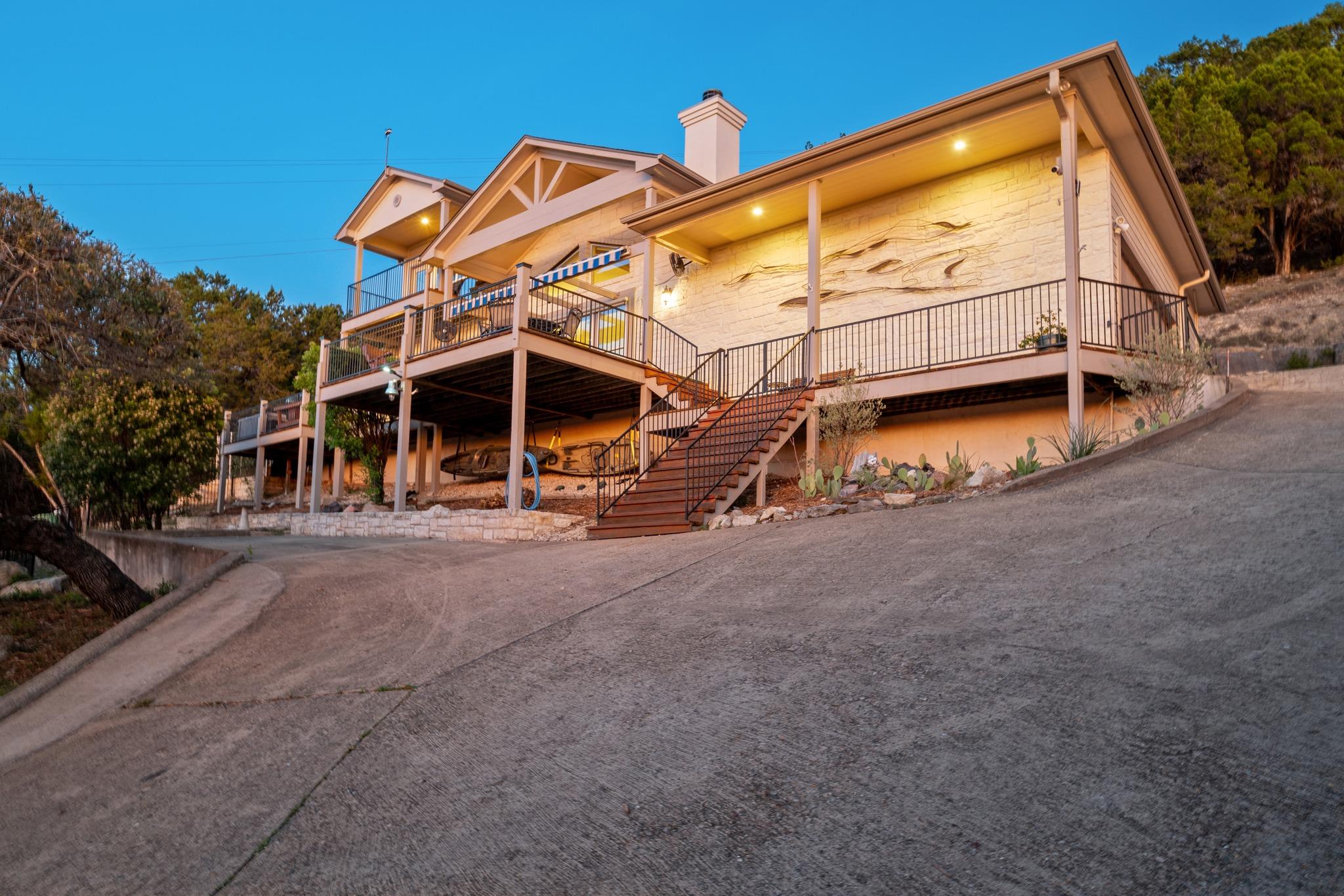 Welcome to 5903 Lakeshore Drive! Enjoy world-class Lake Travis views, breathtaking Texas sunsets, and sweeping 180-degree panoramic waterfront scenery from this hillside retreat. Situated on nearly half an acre along a quiet street directly across from the lake, the home is thoughtfully positioned to capture water views from every interior room and outdoor living space. From the expansive front deck to the abundance of windows...