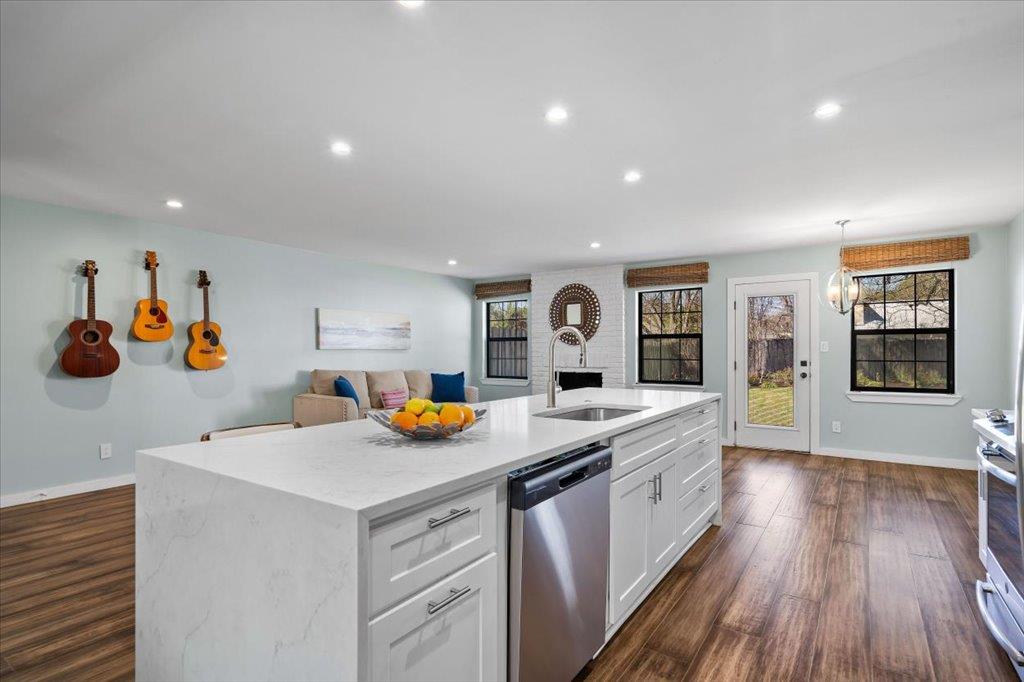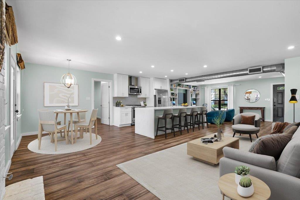 Welcome to 6102 Bullard Dr., B, a modern Colonial-style single-family townhome thoughtfully remodeled in 2019 in the heart of vibrant Allandale. The essence of the home is an open, inviting kitchen featuring a huge double waterfall Silestone center island with barstool seating, farmhouse sink, & full SS appliances while flowing to family, dining, and living room areas with built-ins for work-from-home flexibility — perfect for...