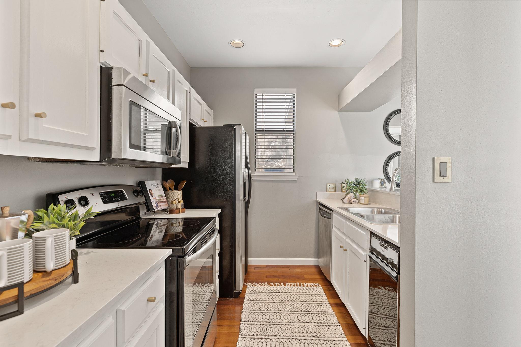 Welcome to your serene Hyde Park retreat! This airy second-floor condo is nestled in one of Austin’s most beloved neighborhoods and perfectly blends comfort, character, and convenience. Soaring ceilings and a wall of windows flood the space with natural light, while warm hardwood floors on the main level bring elegance and charm. The updated kitchen includes a refrigerator and features modern finishes, ideal for cooking or e...
