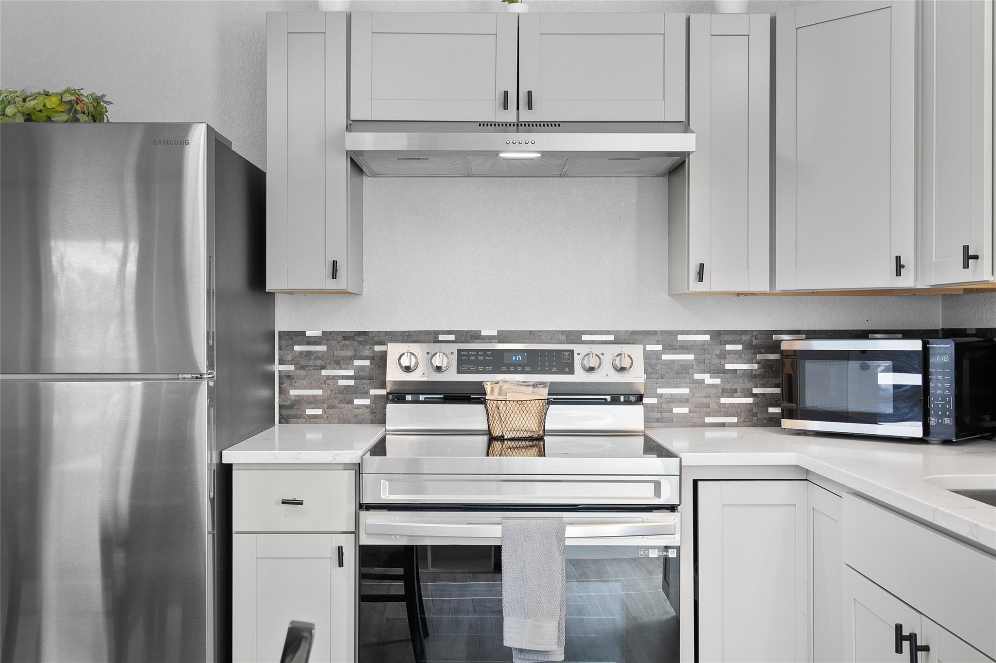 - Built-In Electric Range, Cooktop, Dishwasher, Disposal, Microwave