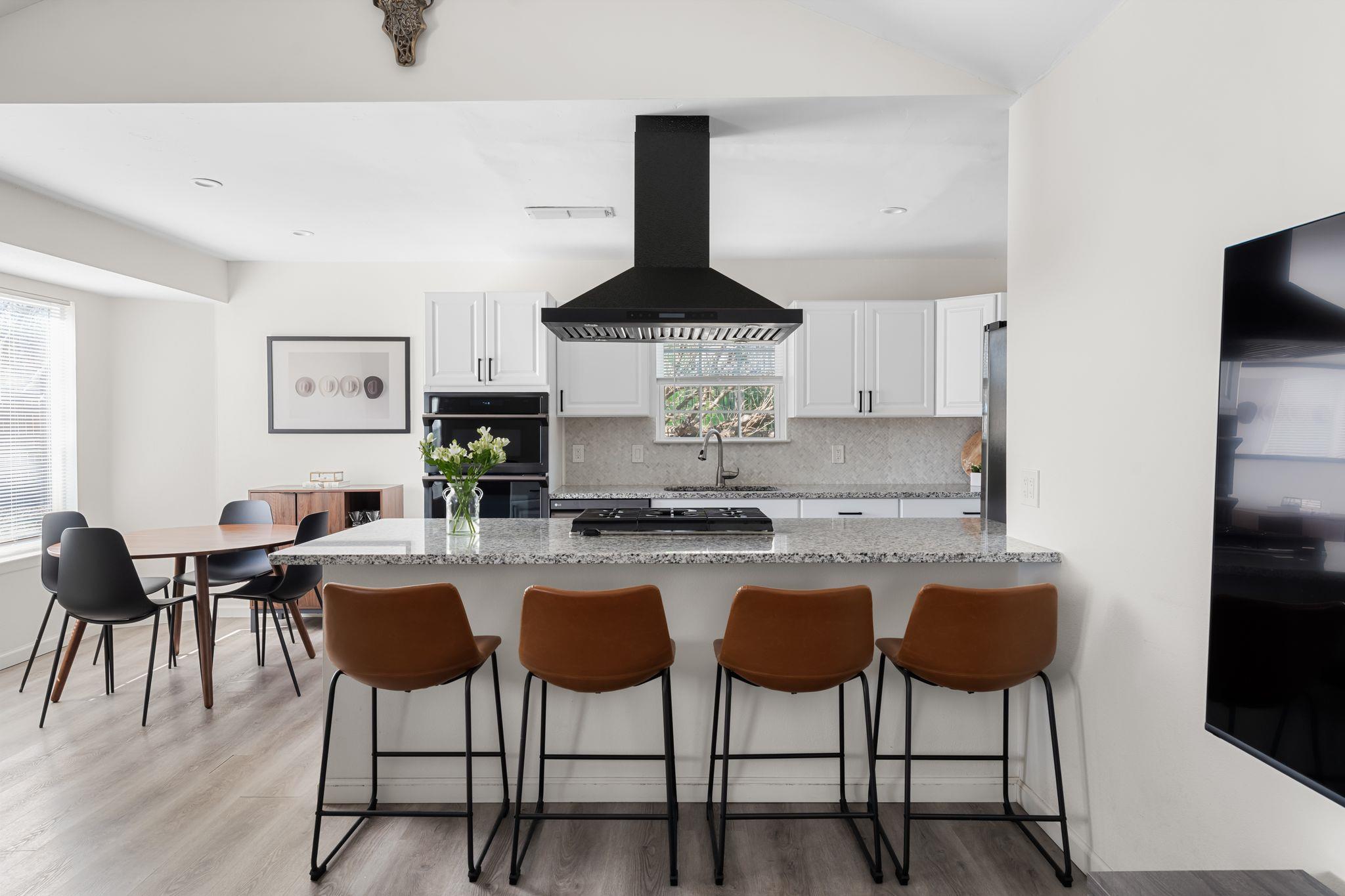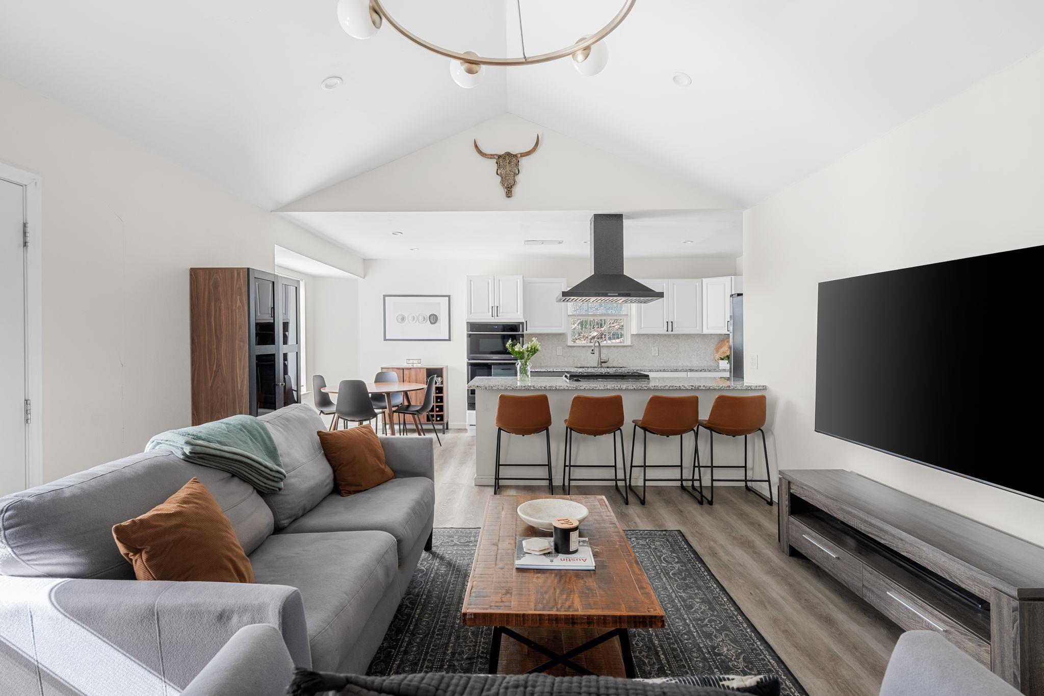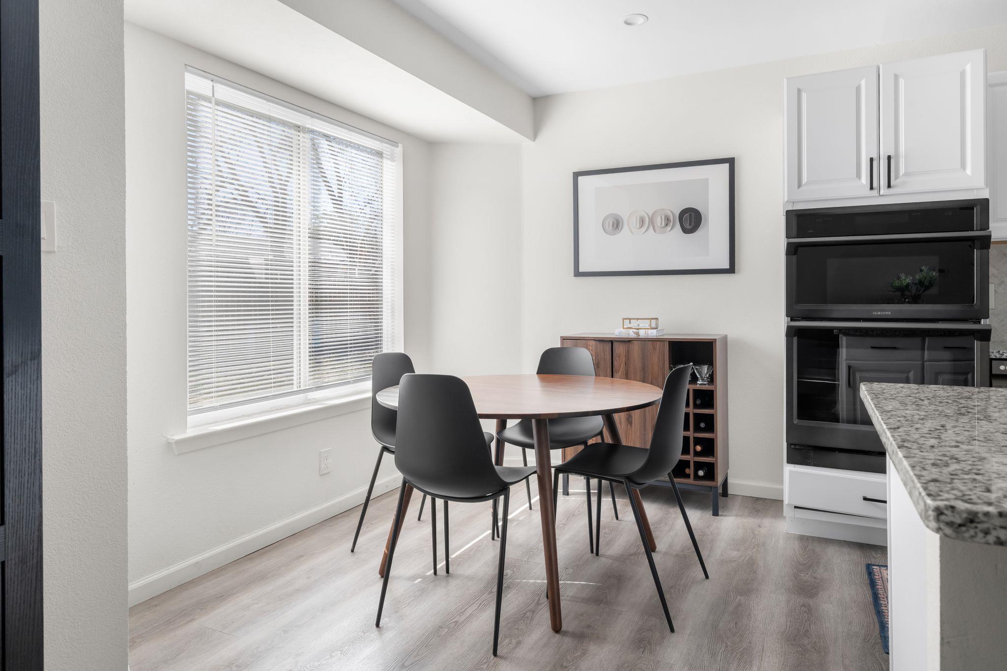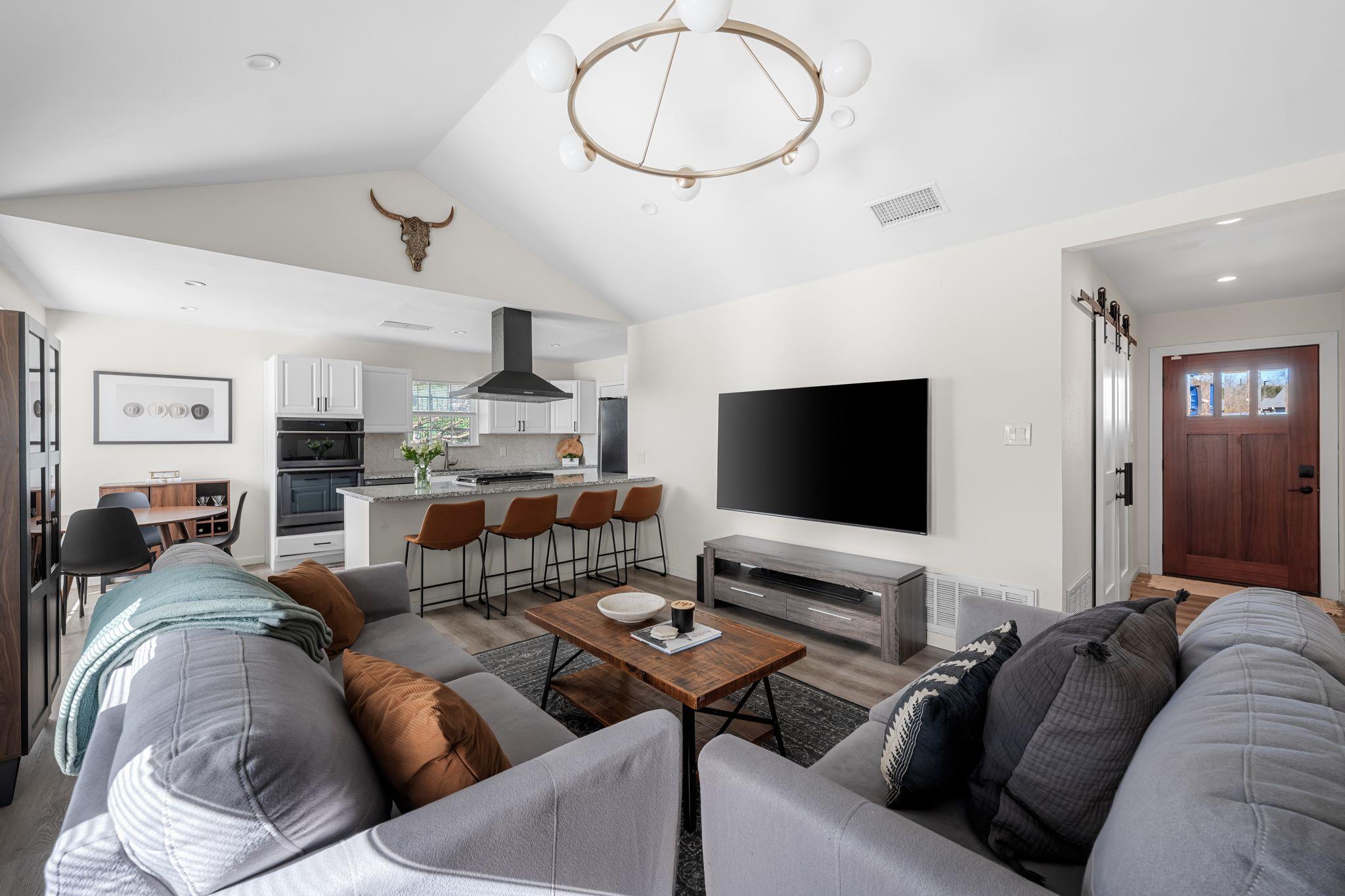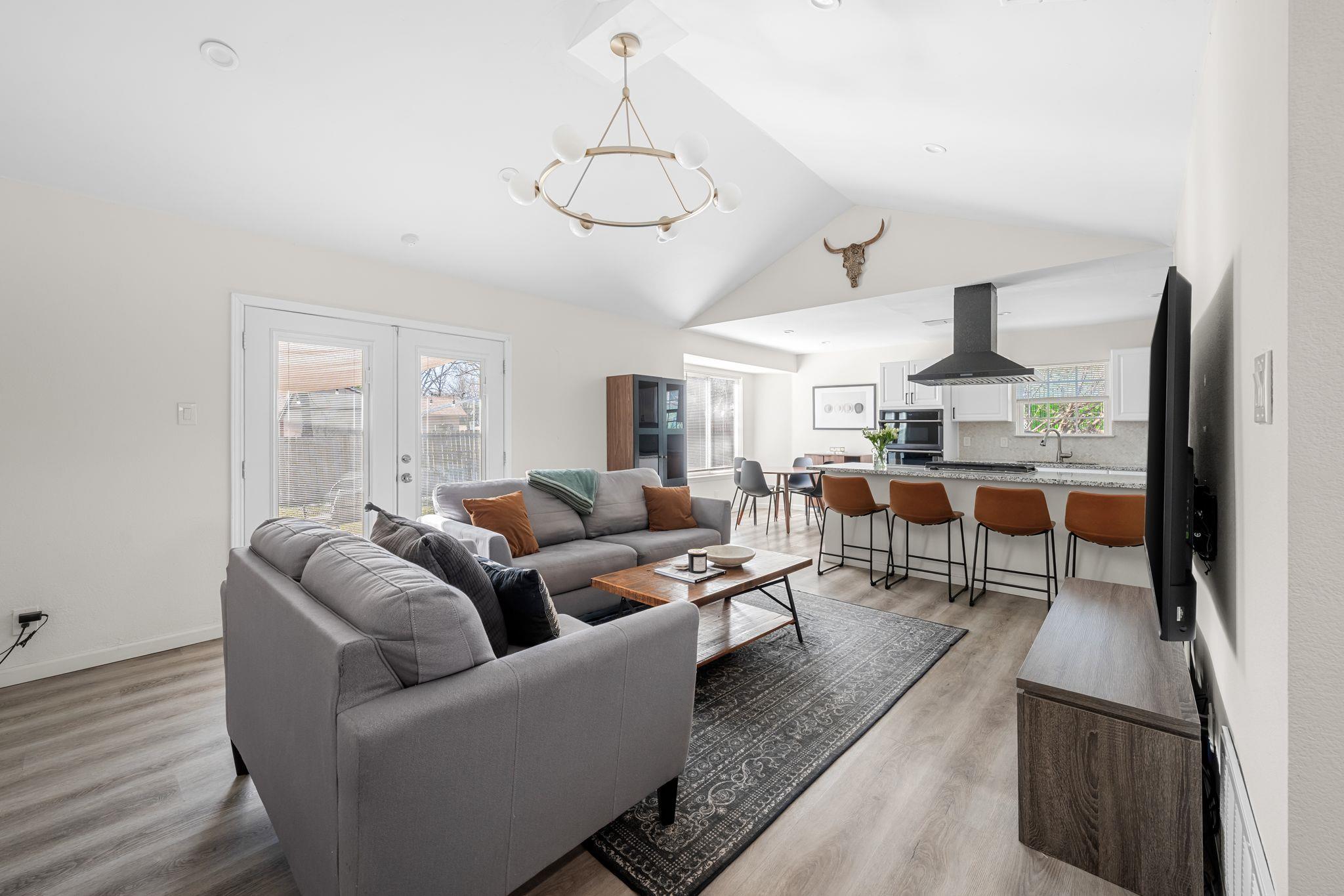 Step into this bright, updated home tucked at the end of a quiet cul-de-sac, where vaulted ceilings and wide-plank flooring set an inviting tone the moment you walk in. The open living and dining areas flow right into the refreshed kitchen, complete with granite counters, stainless steel appliances including fridge, modern light fixtures, a generous breakfast bar, and a cozy, sunlit dining nook, the perfect space for slow morn...