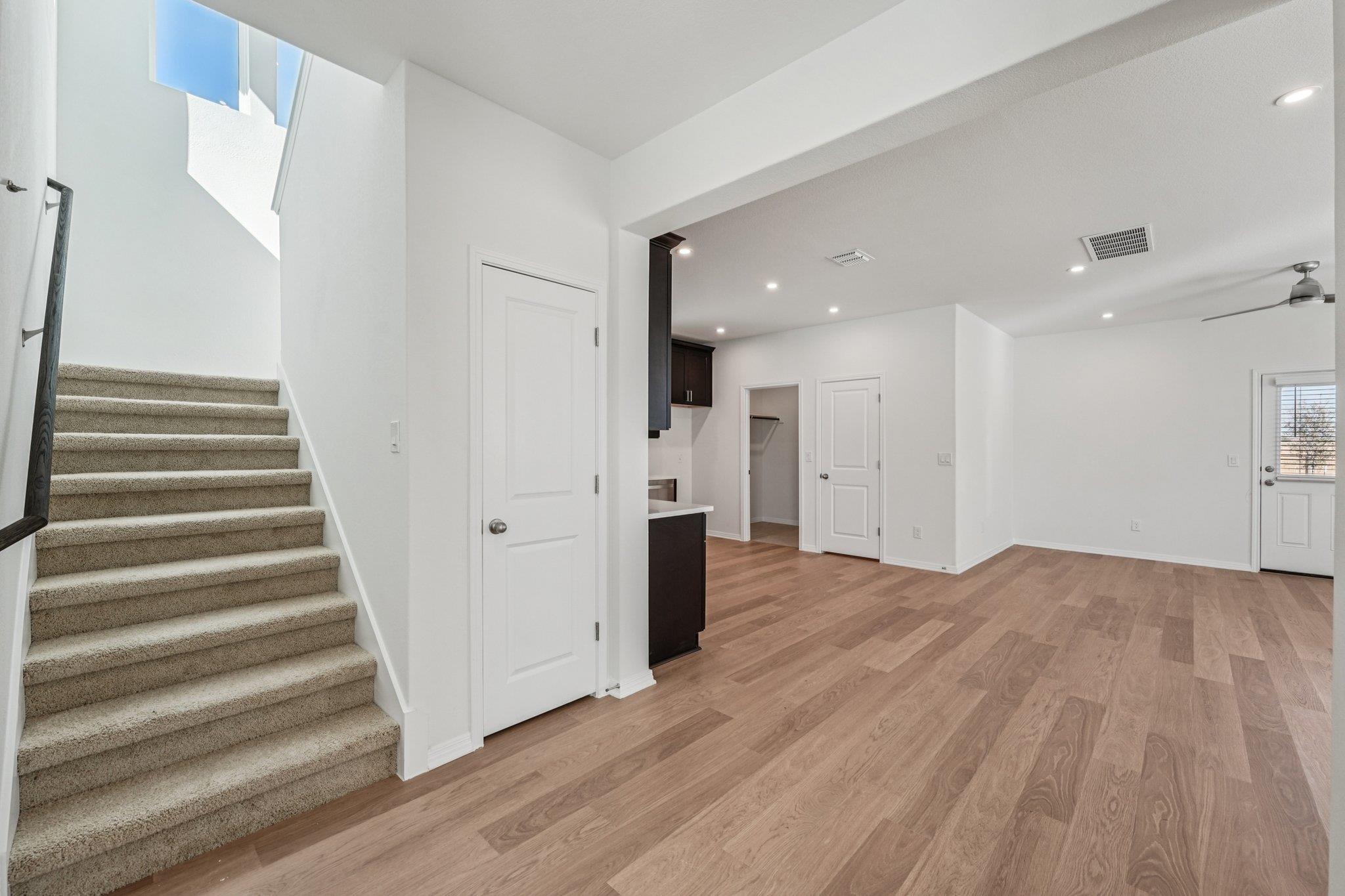 This inviting, open home comes complete with upgrades throughout and a separate office on the first floor ! If you love to cook, this home has the perfect kitchen with tons of cabinet space and beautiful quartz countertops! The kitchen faces out to an open living space with luxury Revwood flooring throughout. 42” Espresso soft-close cabinetry aligns the open kitchen, offset with a white subway tile backsplash. The owner’s suit...