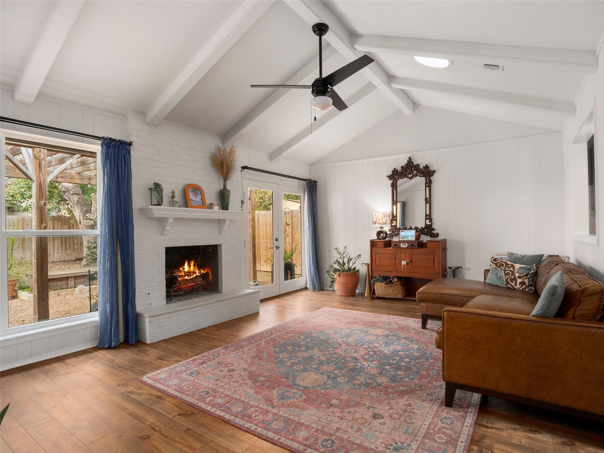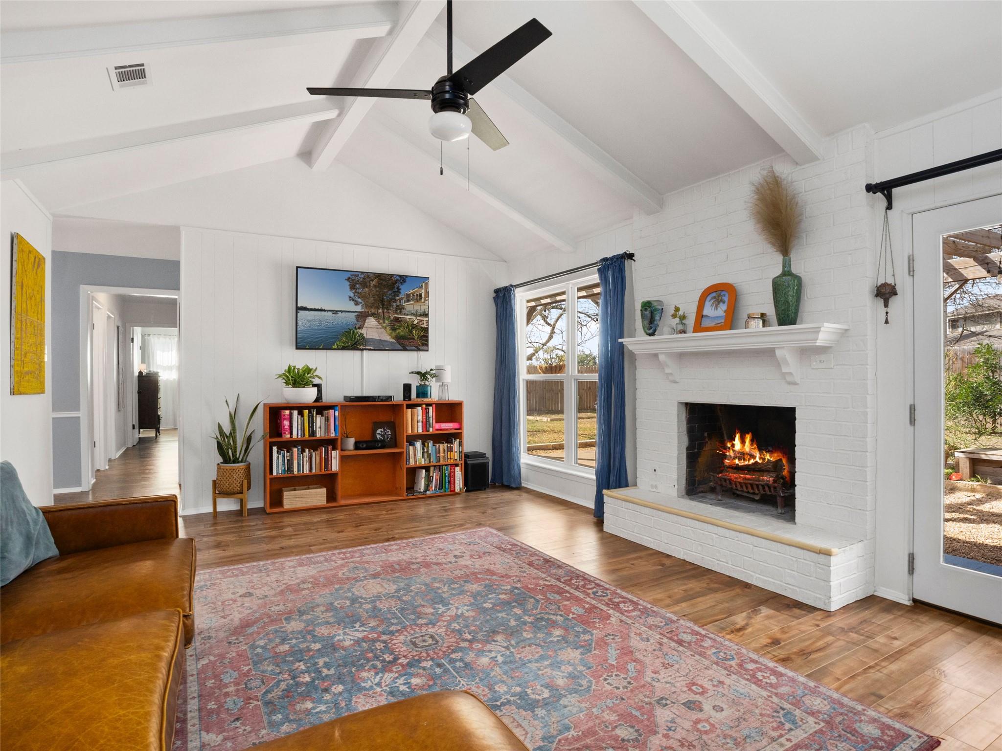 Charming 3-bedroom, 2-bath home ideally located in the heart of South Austin. Nestled in an established neighborhood just minutes from Downtown, this property blends character and convenience effortlessly. Wood-look laminate flooring flows throughout into an open living room featuring a cozy wood-burning fireplace, while vaulted ceilings with exposed wood beams add architectural charm and an airy feel. The kitchen offers butch...